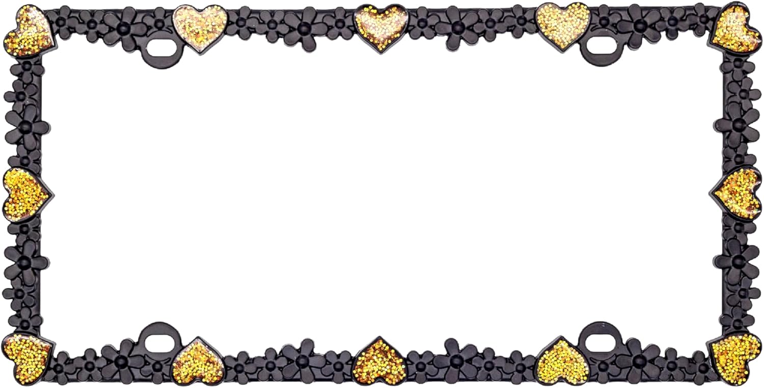 - VITALITY DESIGN - Heart and Daisy design. Matt black with silver glitter and white heart reflective stripe license plate frames. It likes a daisy chain with shining heart diamond. It makes your car feel like a princess, full of love, sweety, happiness, nature, and hope. Shining under sunshine and neon at night. Like a Starry Sky. Reflective stripe helps your car to be recognized at night. It's safer and more beautiful.