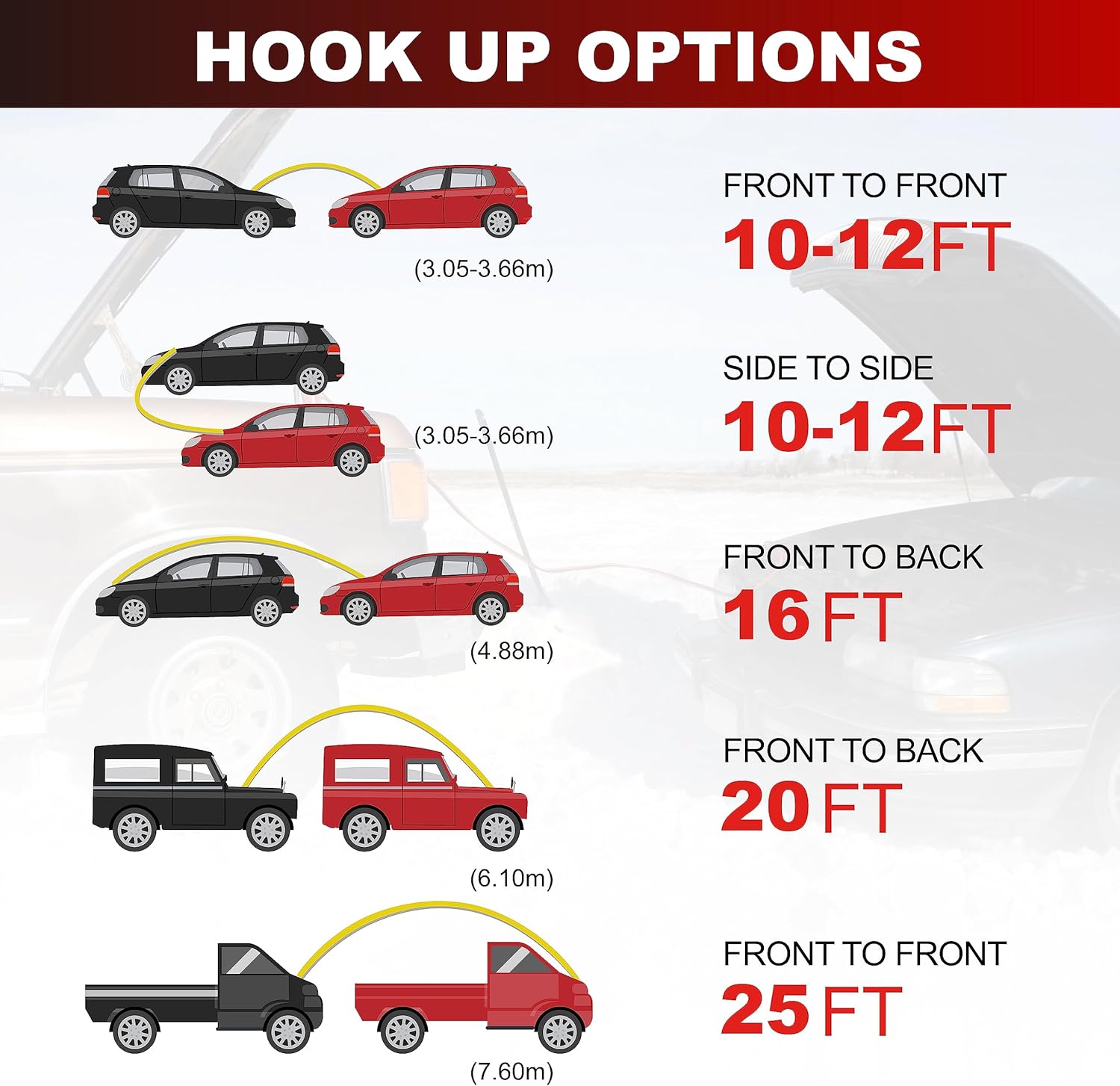 - AWELTEC 20 Foot length makes it easy to reach from one car battery to another, Unique Design clamps suitable for various cars and connection ways.