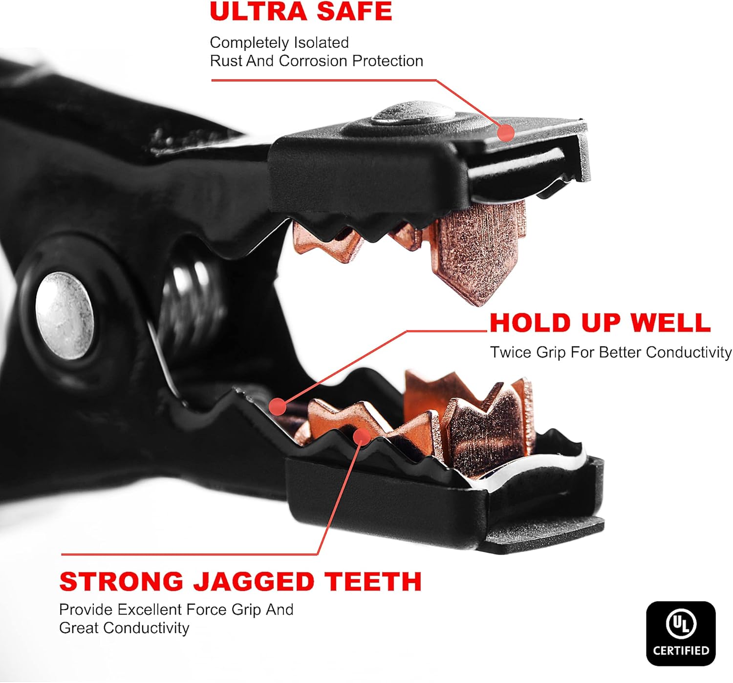 - AWELTEC 12 Foot length makes it easy to reach from one car battery to another, Unique Design clamps suitable for various cars and connection ways.