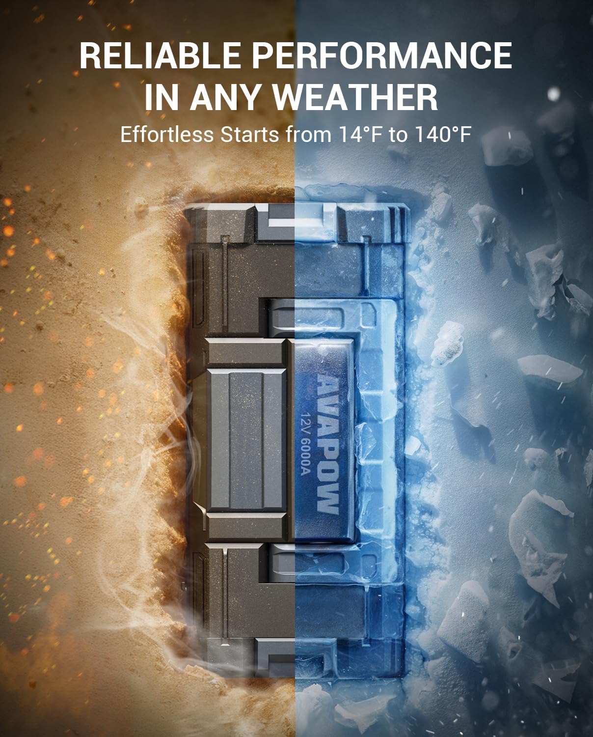 - Ground breaking 2-Second Start: Jump-starts your car in just 2 seconds, even with a fully drained battery. The A68 portable car jump starter delivers 6000A peak current, supporting all gasoline and up to 12.0L diesel engines ,It is suitable for all ( (12V vehicles)) cars, trucks, motorcycles, boats, RVs, tractors, ATVs, UTVs, lawnmowers, snowmobiles, etc. Meanwhile, it is ultra-lightweight and portable.