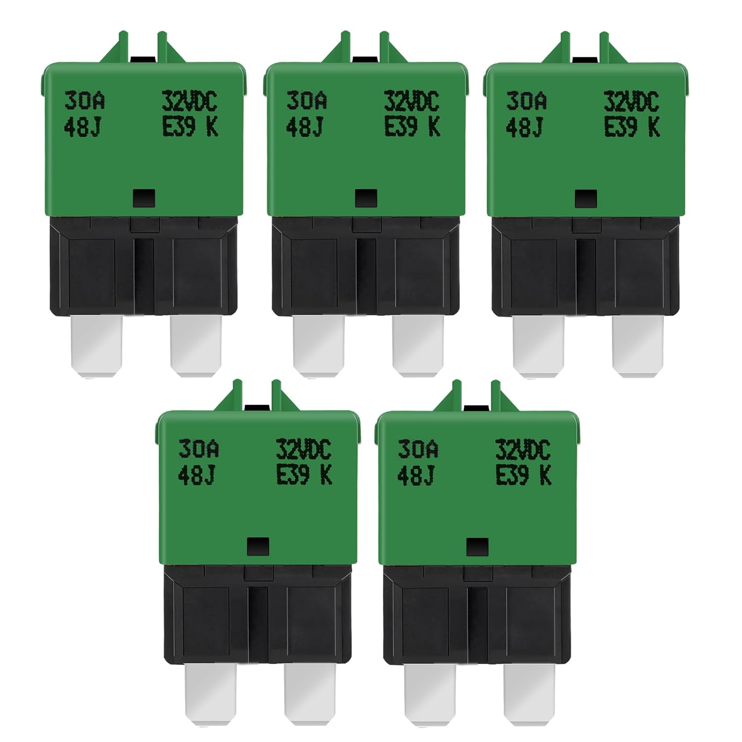 GLOSO Circuit Breaker Fuse E39 (T3) Manual Reset For Car Truck RV Automotive Marine Boat Trolling motor & Custom Wiring Audio battery protection/Low Profile ATC/ATO (30A - 5 Pack)