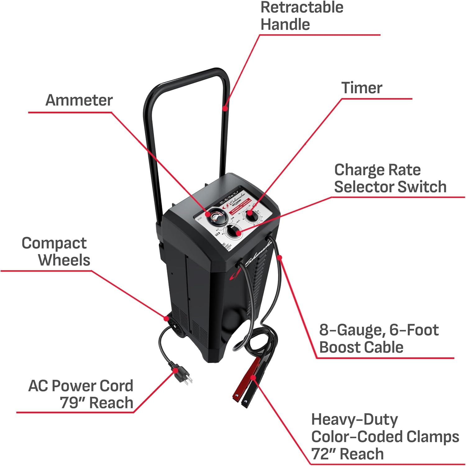 - Complete Package - Includes (1) SC1437 Manual Timer-Controlled Wheeled Battery Charger and Engine Starter, (1) user manual