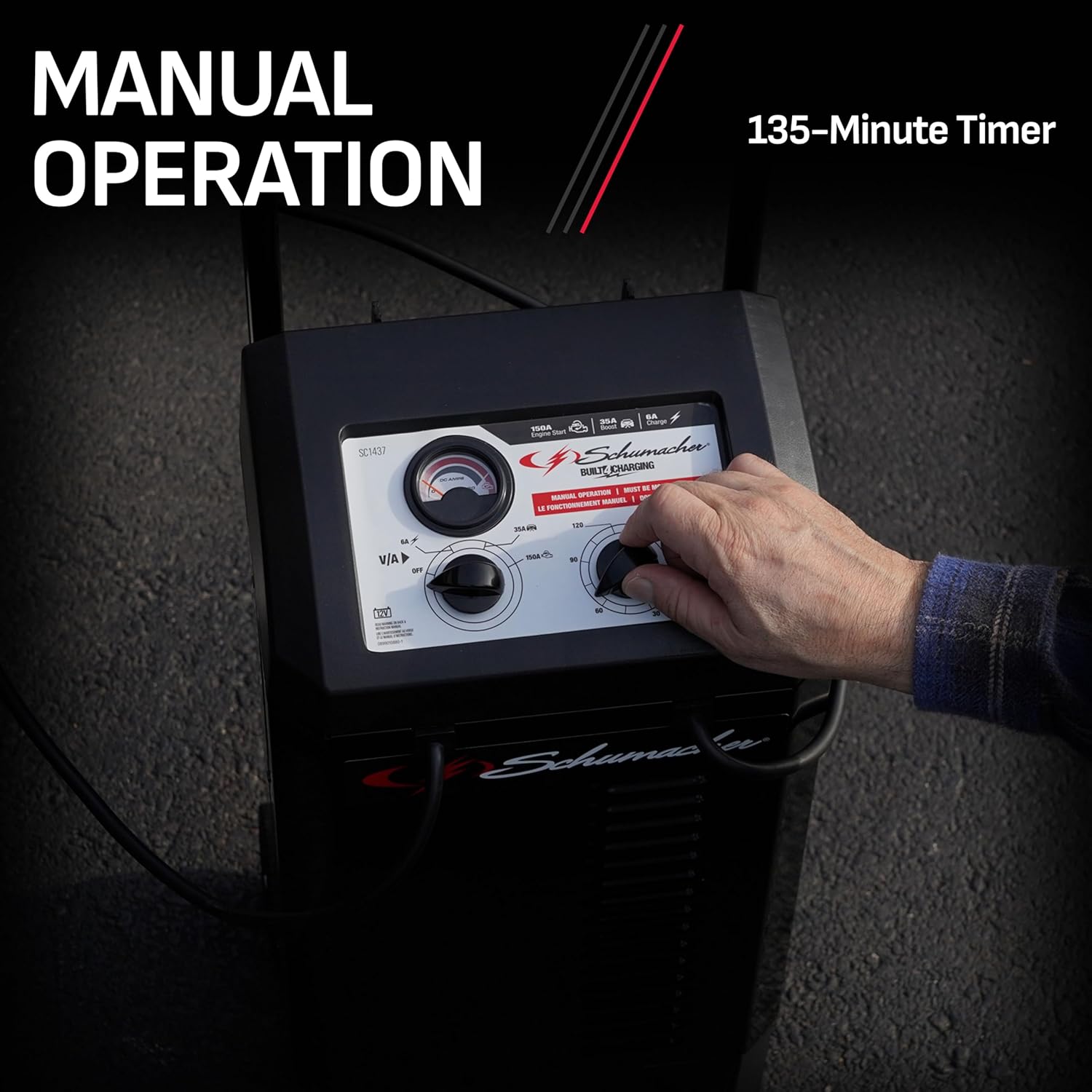 Schumacher Electric Manual Battery Charger & Engine Starter - 12V, 150A with 25A Boost - Heavy Duty Engine Starter & Charger for Standard, AGM, Gel & Deep-Cycle Batteries - 6-Foot Output Cables SC1437