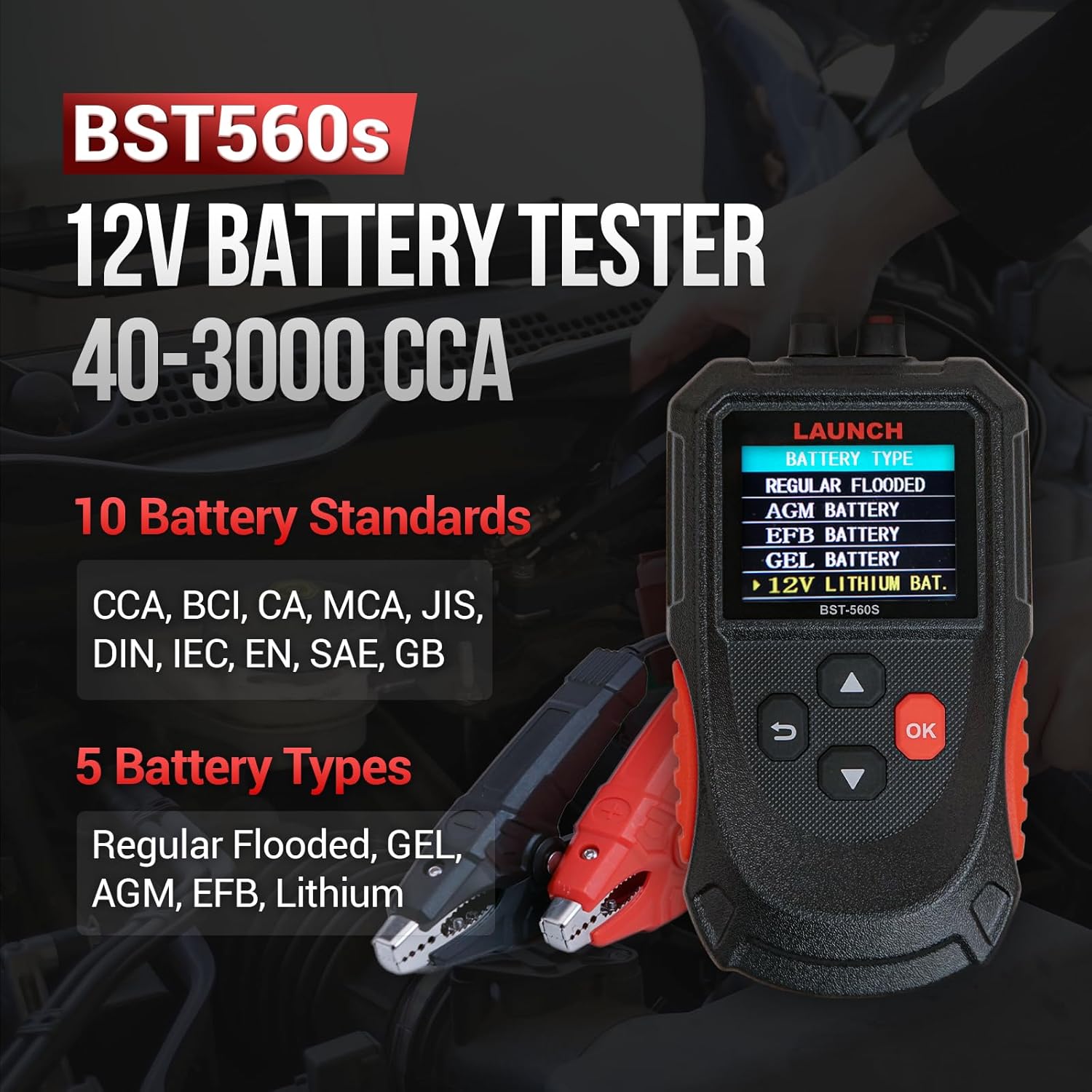 Car Battery Tester, Launch BST-560S 12V Digital Automotive Battery Load & Alternator Tester, Charging Cranking System Analyzer, for Cars Trucks Motorcycles SUVs ATVs RVs Boats