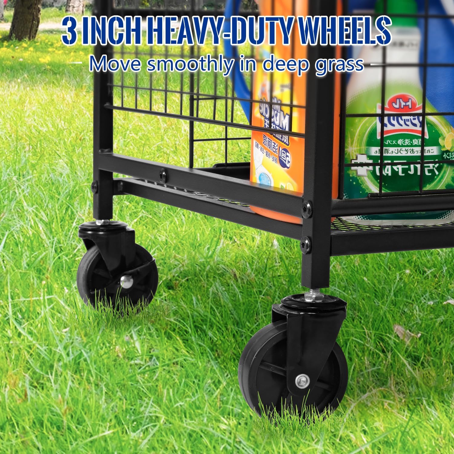 - 【Heavy Duty Wheel Design】This lawn tool cart comes with 4 heavy-duty wheels which is 3 inch, can move smoothly in deep grass and can easily move from inside to outside. Floor mounting rack keep your tools easily reach and get when needed.