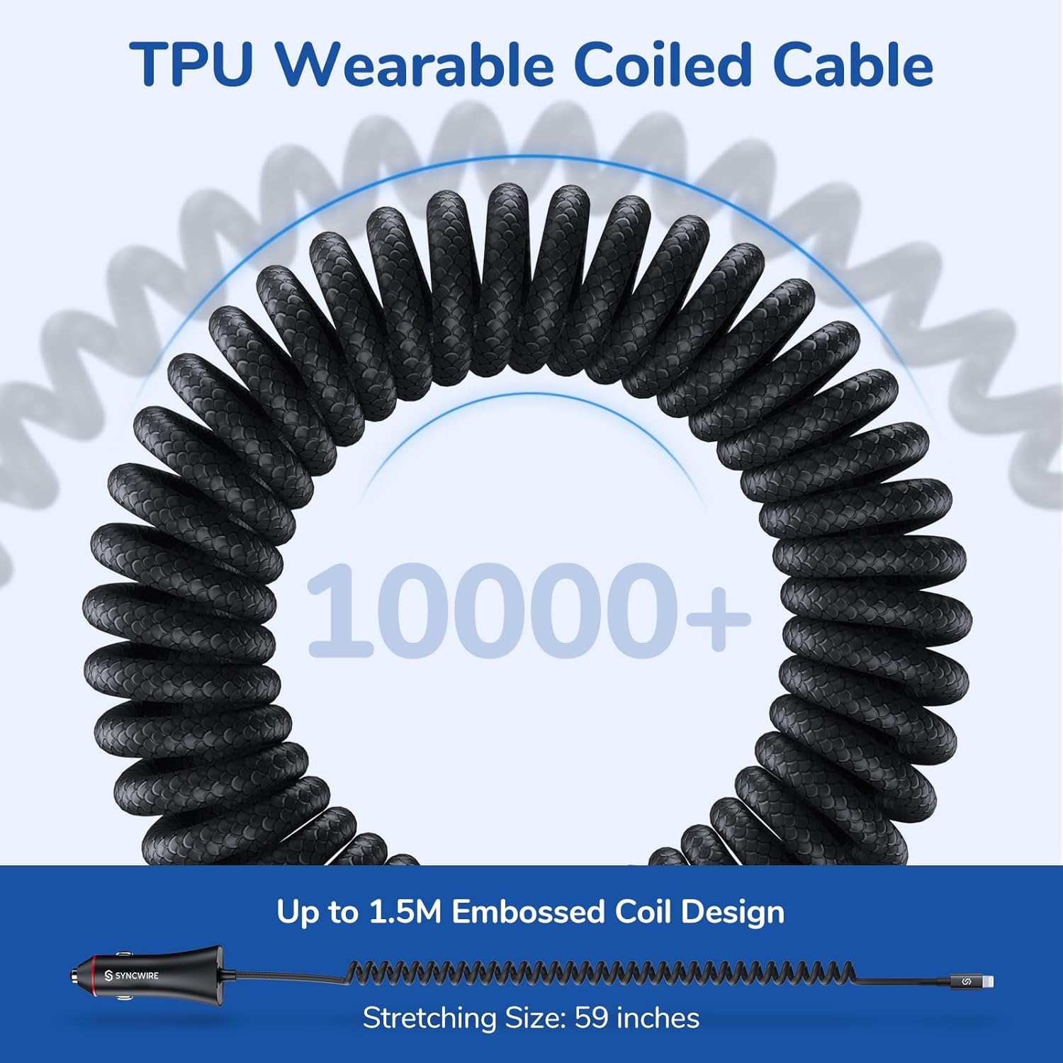 - ăClever built-in Lightning cableă The coiled cable can extend to 5ft (1.5M) if pulled tightly while it naturally extends to approximately 1.3ft (0.4M), with first-rate shape retention! And it is designed to fit all aftermarket cases & accessories(including life proof & otter-box cases).
