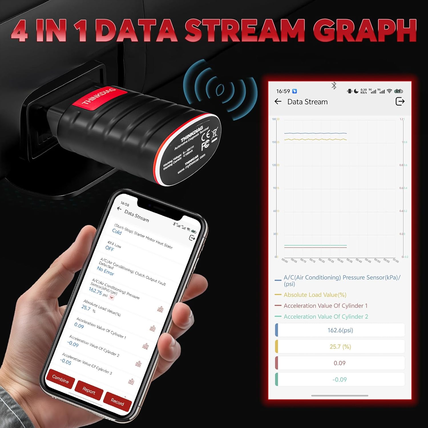 - ăđ˛ Intelligent Diagnostic Tool with Auto-VINăThinkdiag Bluetooth OBD2 scanner makes your smart phone device become a professional vehicle diagnostic tool, it compatible with Android and iOS system. Auto-VIN function supports the Thinkdiag identifies the most car models automatically, if autovin failed, you can choose car info manually. Full system Vehicle health report will be automatically created after diagnosis, report can be shared. Live Data Stream combined 4-in-1 Graphing+Data Record better for monitoring vehicle performance and analyze the abnormal parameter.