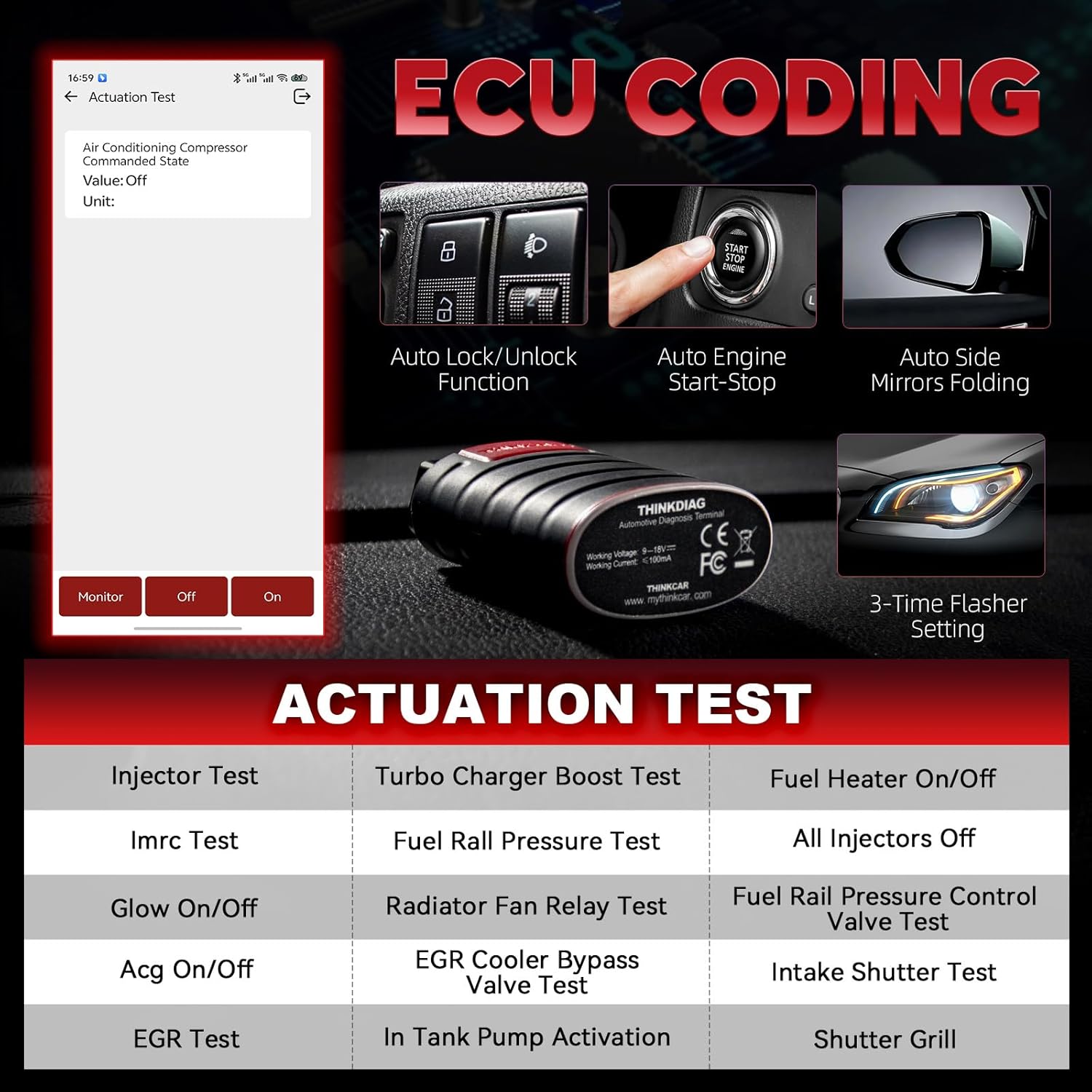 - ăâď¸ ECU Coding & Hidden Feature ActivationăThinkdiag diagnose obd2 scanner bluetooth allows you to match the replaced components with ECU, flash hidden functions for BMW, for GM, for Benz etc. Disable some annoying features, customize vehicle's settings to improve performance. No matter you are private owner or professional technician, Thinkdiag is a powerful and handy scanner in your repair tool list. ECU coding is not suitable for every car models, please check with us before purchse.