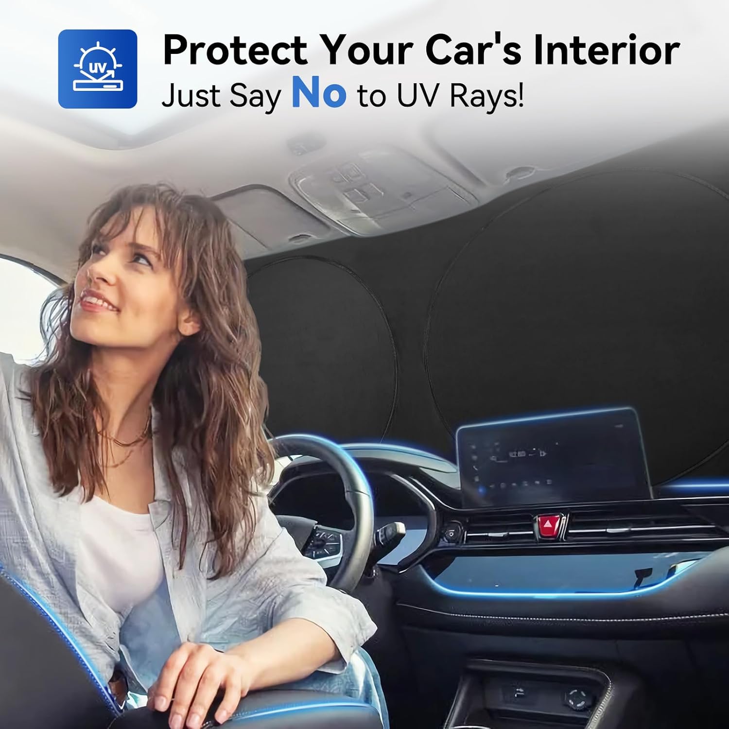 - Car Interior Protector: Upgraded 2025 UV rays reflective technology with 99% UV blocking rate! You don't have to worry about the hot sun hurting your car dashboard and seats anymore