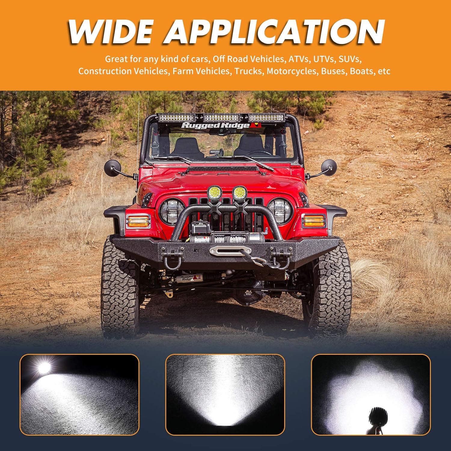 - Wide Application & Universal Fitment - Compatible with almost all off-road vehicles, motorcycles, ATVs, UTVs, SUVs, trucks, buses, boats, and more. Operating on 9-32V, these lights are perfect for construction, farming, marine, and off-road adventures. Upgrade your lighting with confidence!