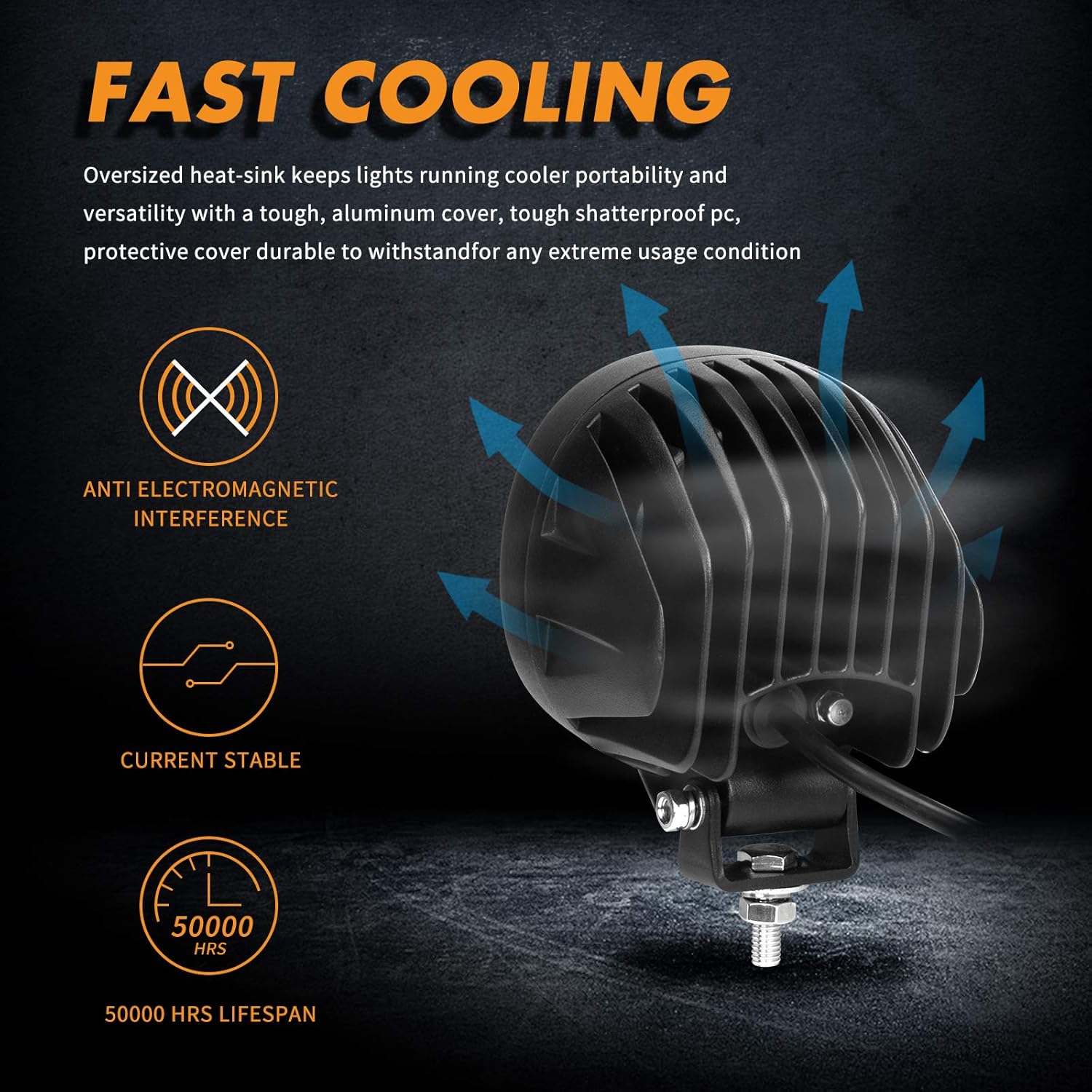 - 50,000hrs Ultra-Long Lifespan - Made of thickened 6063 diecast aluminum heat sinks, maximizes surface area for optimal cooling and enhances the light bar's lifespan up to 50,000+ hours. 90° adjustable stainless steel mounting hardware, rust-proof and anti-corruption.