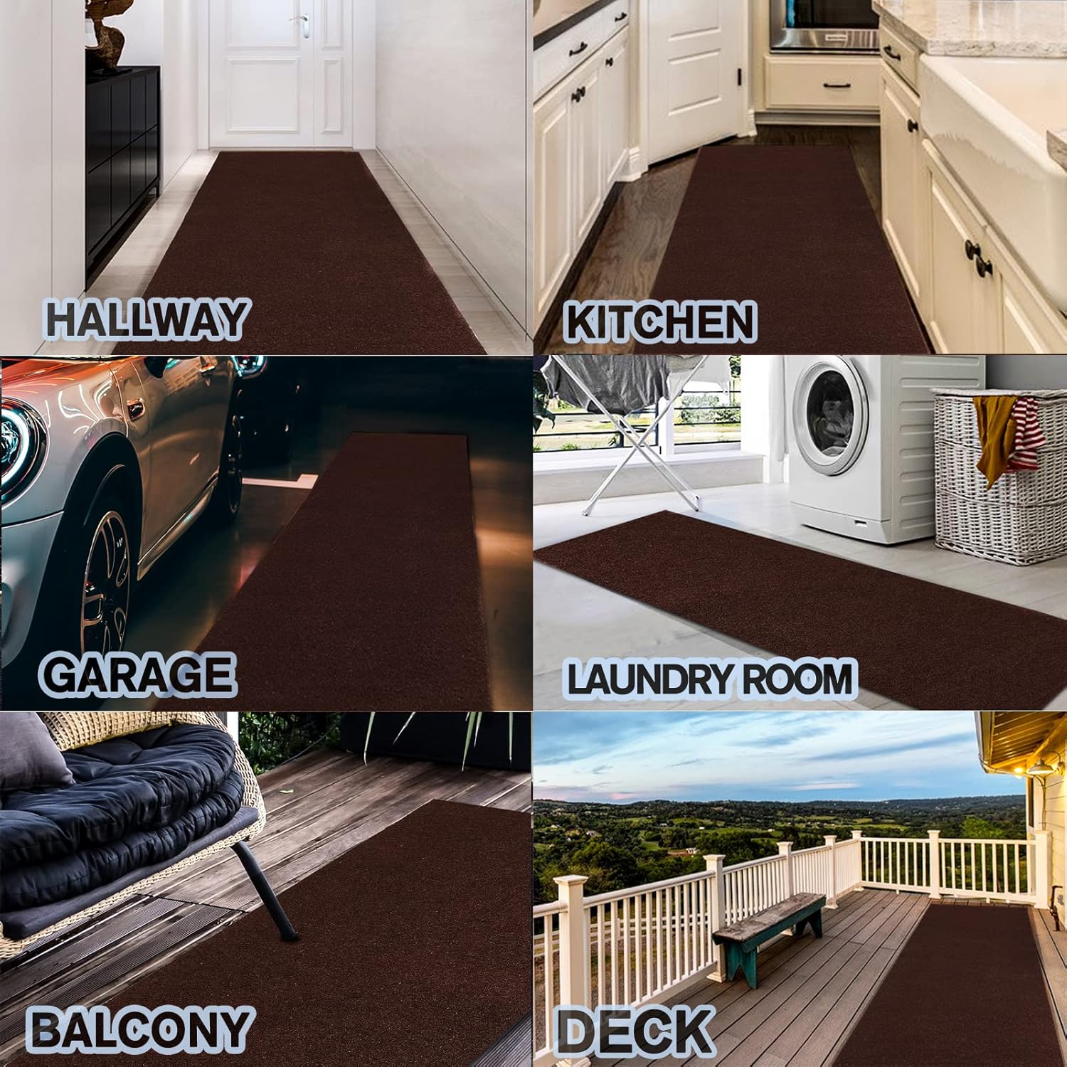 Custom Size Backed Non-Slip Area Rugs Runner, Easy Clean, Waterproof Runner Rugs for Hallway Entryway, Kitchen, Laundry, 2FT x 3FT, Brown