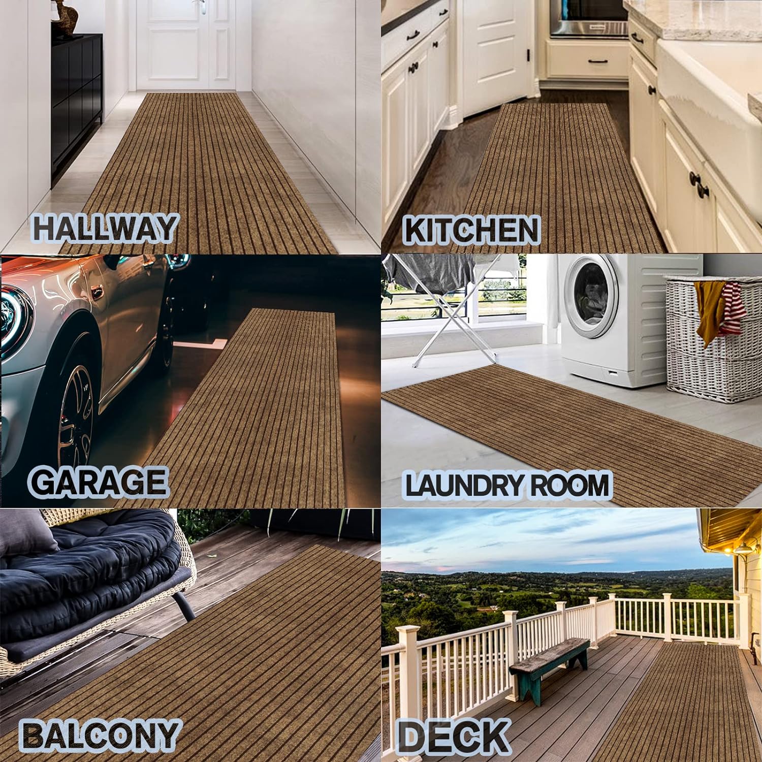 Custom Size Backed Non-Slip Area Rugs Runner, Easy Clean, Waterproof Runner Rugs for Hallway Entryway, Kitchen, Laundry, 2FT x 45FT, Brown Stripe