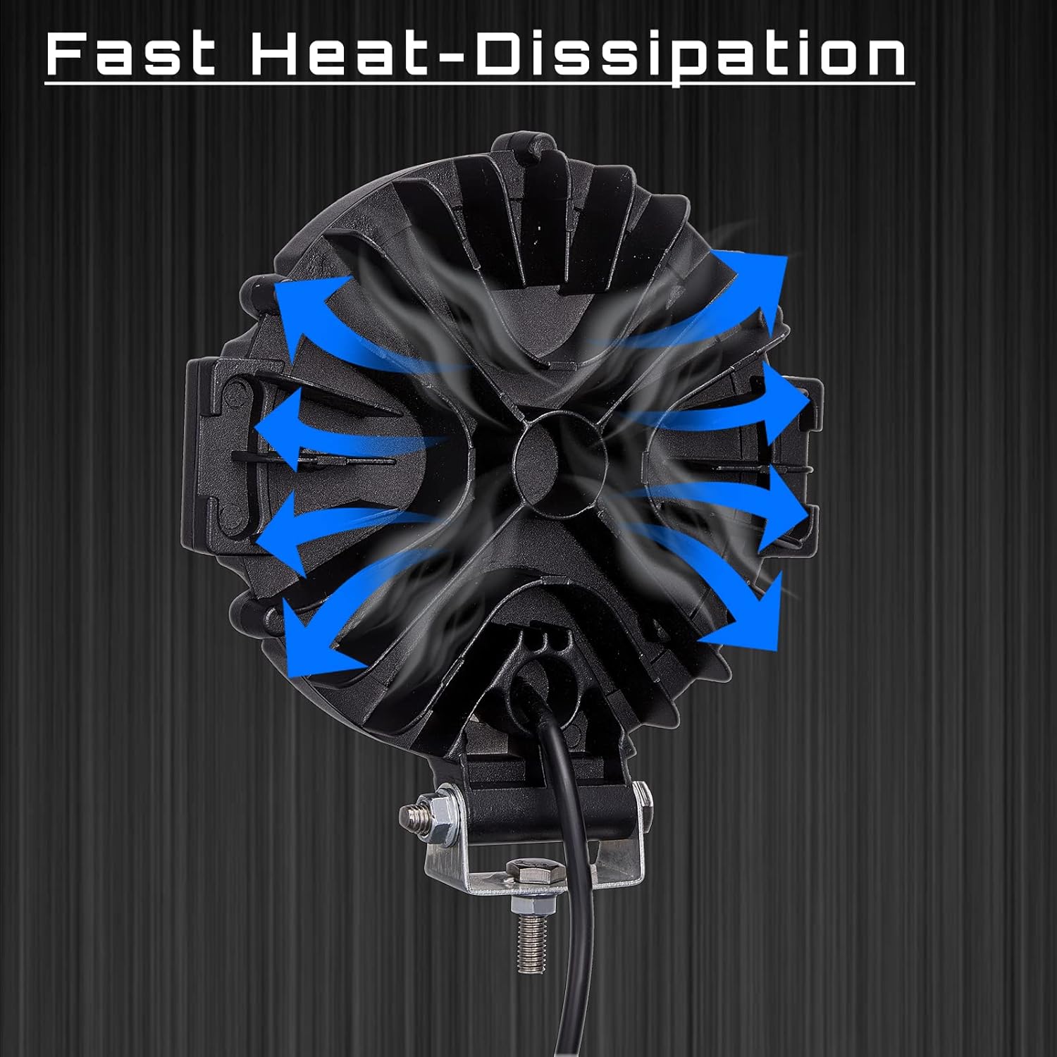 - 【Rigid-Built & All-Weather Working Light Pods】The improved construction design ensures IP67 waterproof and weatherproof. Aluminum housing dissipates heat quickly. The high-transparency clear PC lens and silica wires work flawlessly from -40 to 80°C.