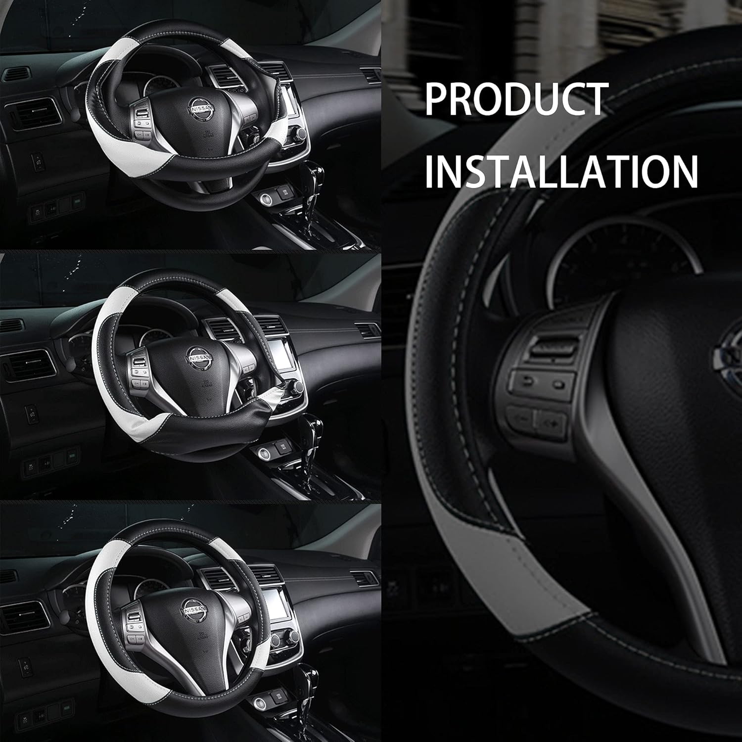 - 【Fashion Design】The white-black contrast color design blends into the interior of your car seamlessly and looks so amazing as it adds bright colors to your car. In addition to protecting your steering wheel, it can also improve the sense of fashion in your car.
