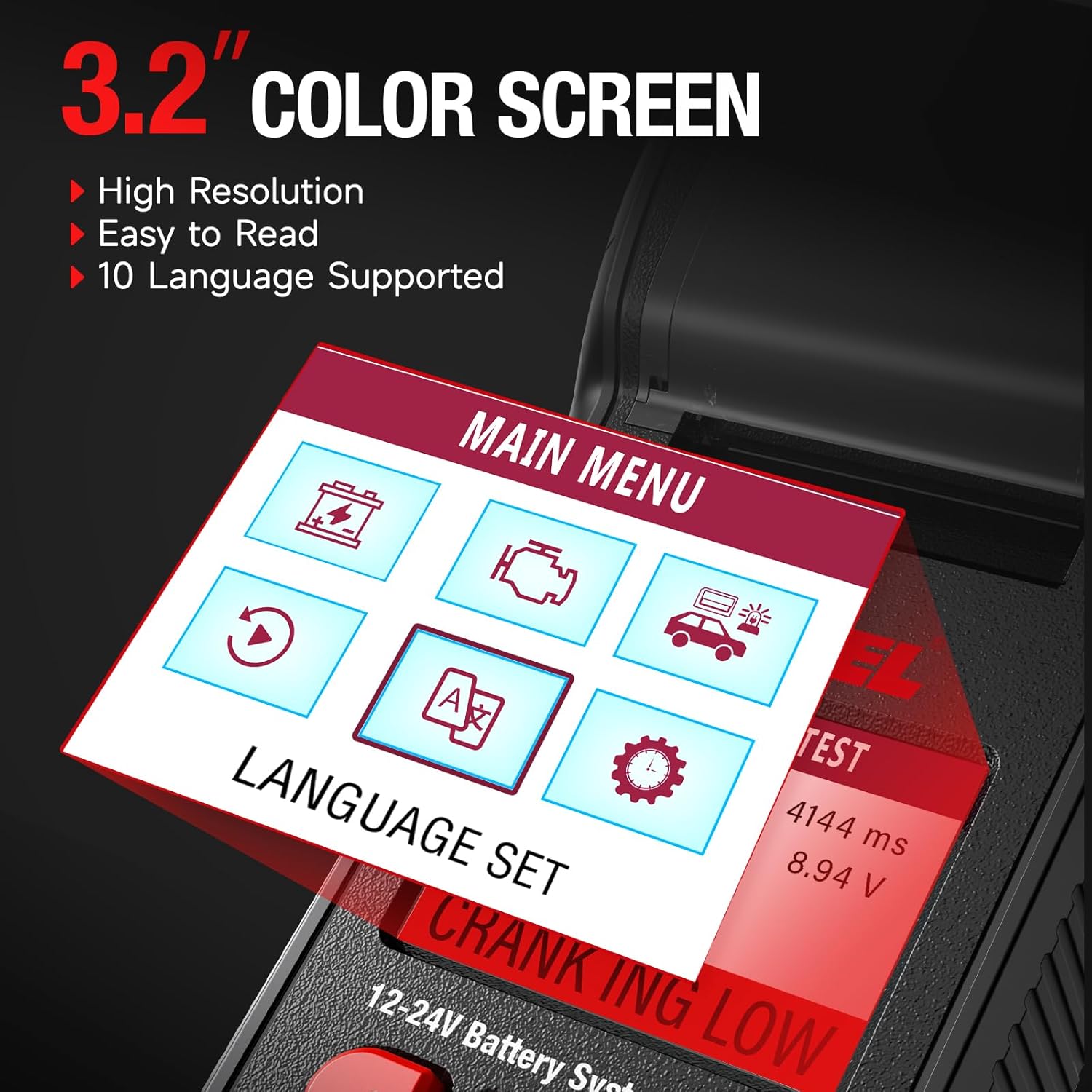 - Multilingual Support - Seamlessly test batteries in 10 languages, including English, Deutsch, Italiano, francais, Espanol, polski, ŃŃŃŃкиК, Nederlands, Japan, chinese, ensuring ease of use and convenience for users worldwide.