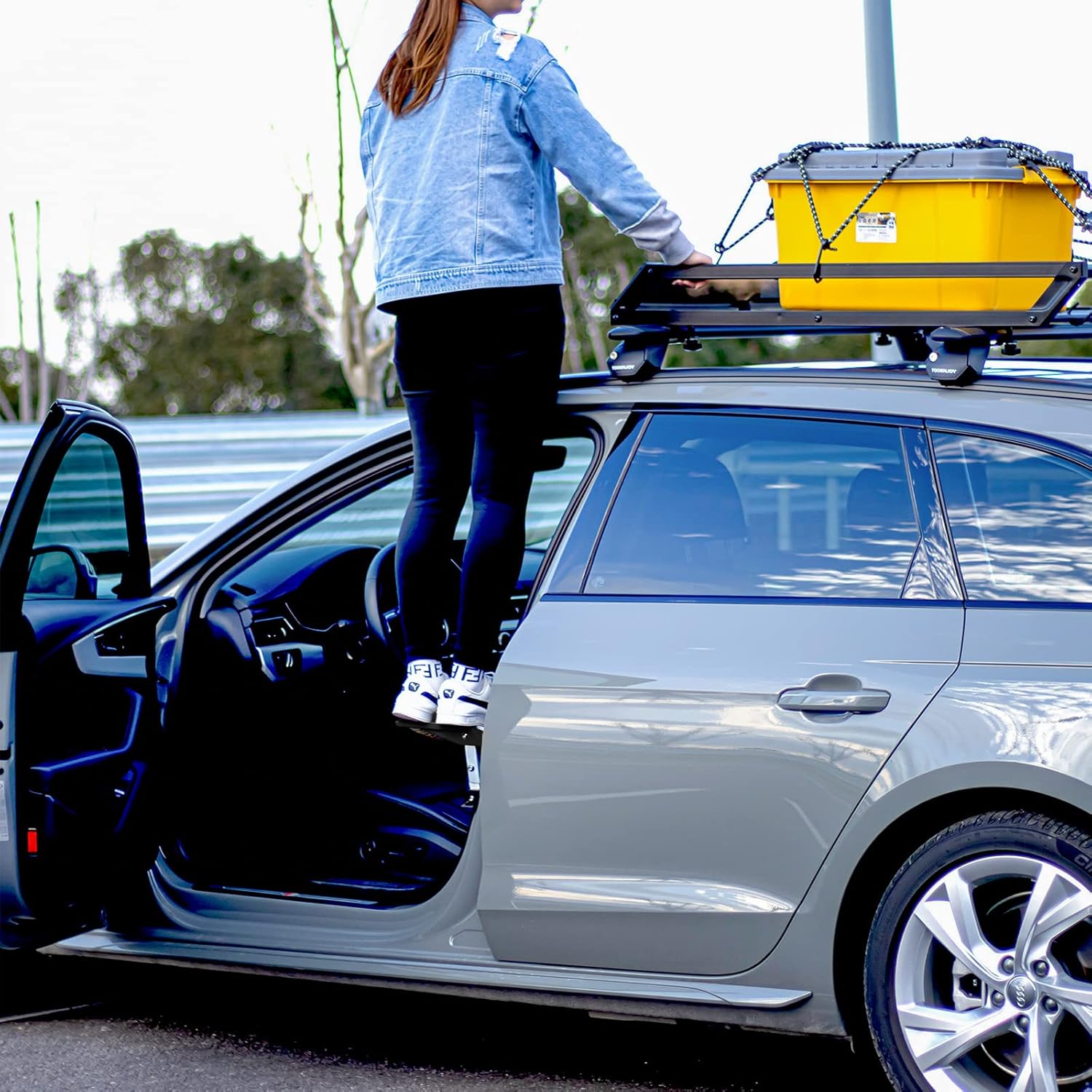 TOOENJOY Extra Protection Car Door Latch Step Both Feet Stand Pedal Ladder/No Assemble Foldable Heavy Duty Car Gadgets for Roof Rack Access Max Capacity 400lbs