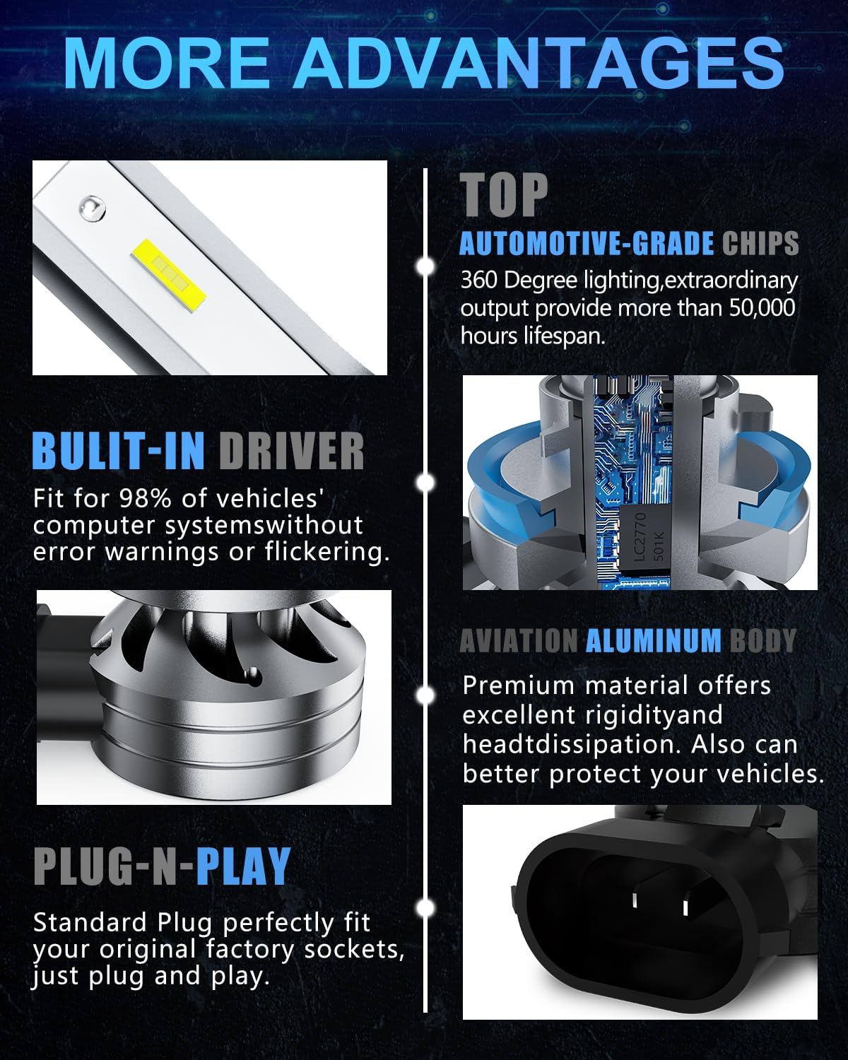 - 【Fit For 95% Vehicles】 H11 LED fog light compatible with 98% of vehicle's computer systems without error. The filter system may not be 100% ACCURATE or up to date, please refer to your vehicle's user manual or search for "car bulb finder" to confirm the model.