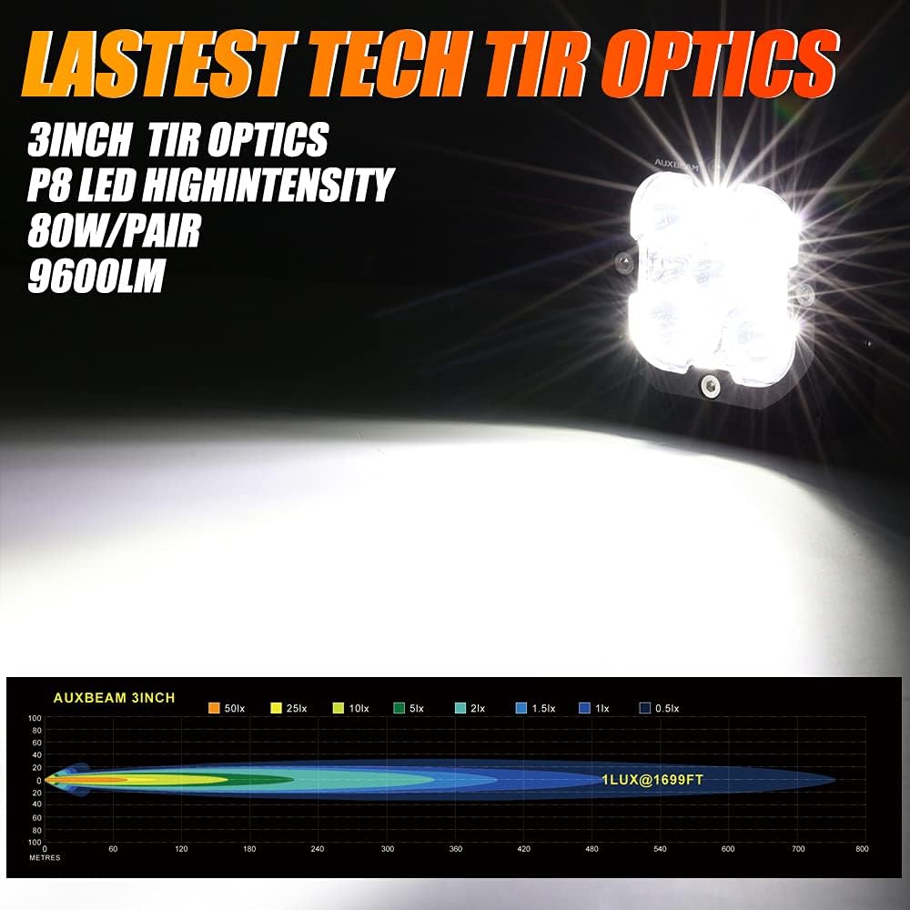 - 【New TIR Optical Design】 3 inch led cube lights use innovative TIR technology (Total Internal Reflection), which not only enables the beam to reach a high focus range but also dramatically improves the lighting efficiency, reducing glare, emitting more brightness than normal LED lights under the same power.