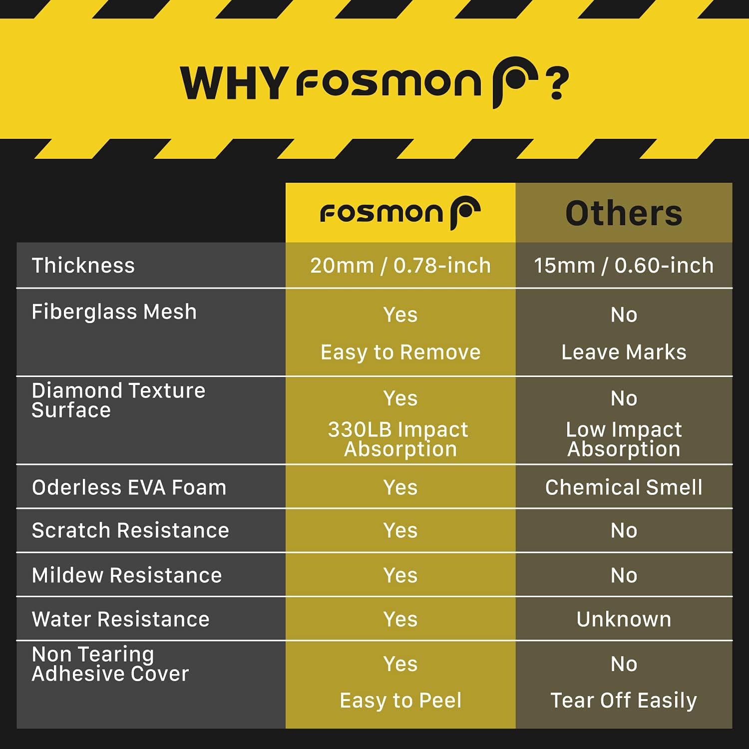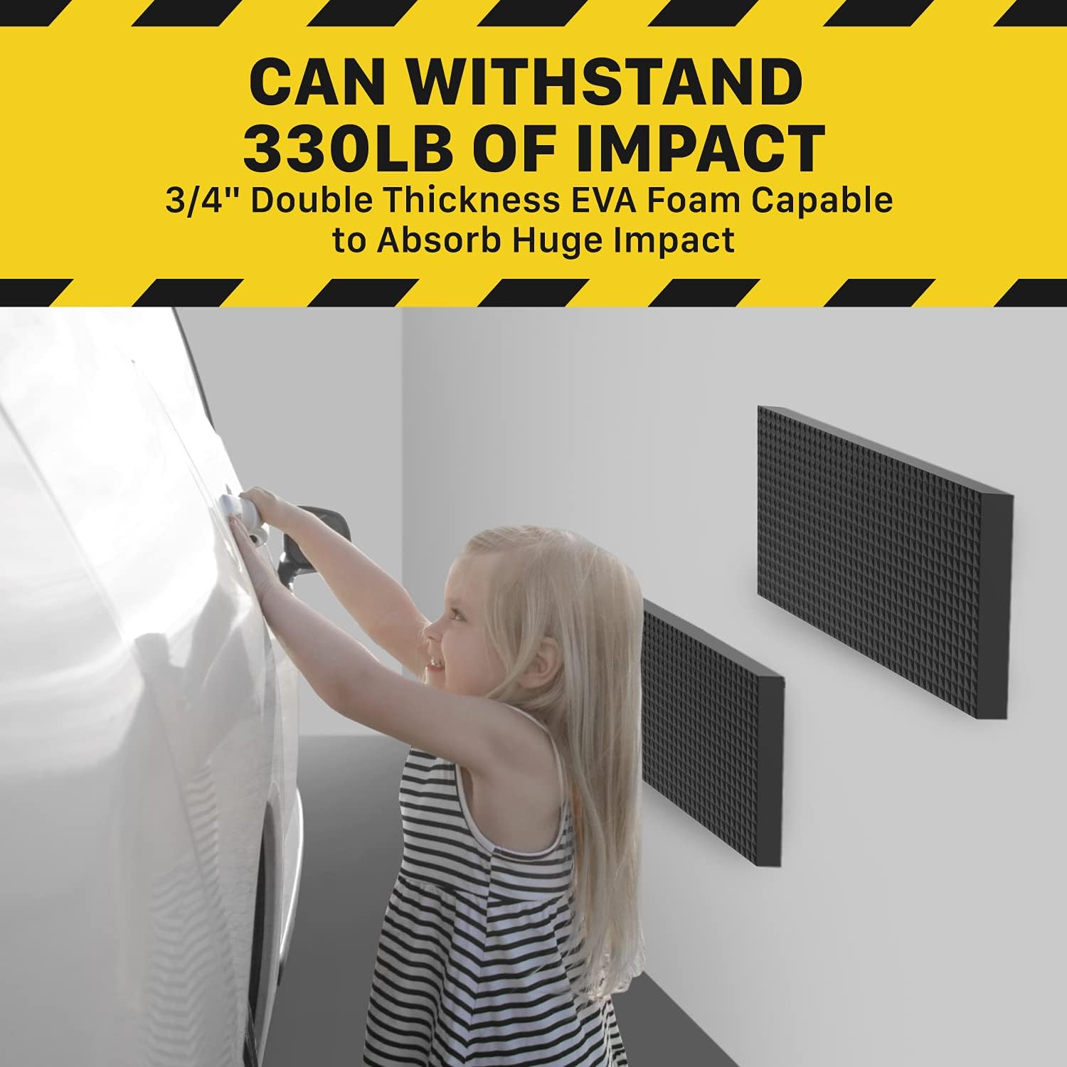 - [MAXIMUM PROTECTION] Fosmon’s garage wall and car door edge guards are made of thick, high-density 0.79 inch / 2 cm EVA foam, which is able to absorb impacts up to 330 pounds. These car door edge guards will protect your garage wall and prevent scratches and dents on your car’s doors and bumpers, saving you money on auto body repair.