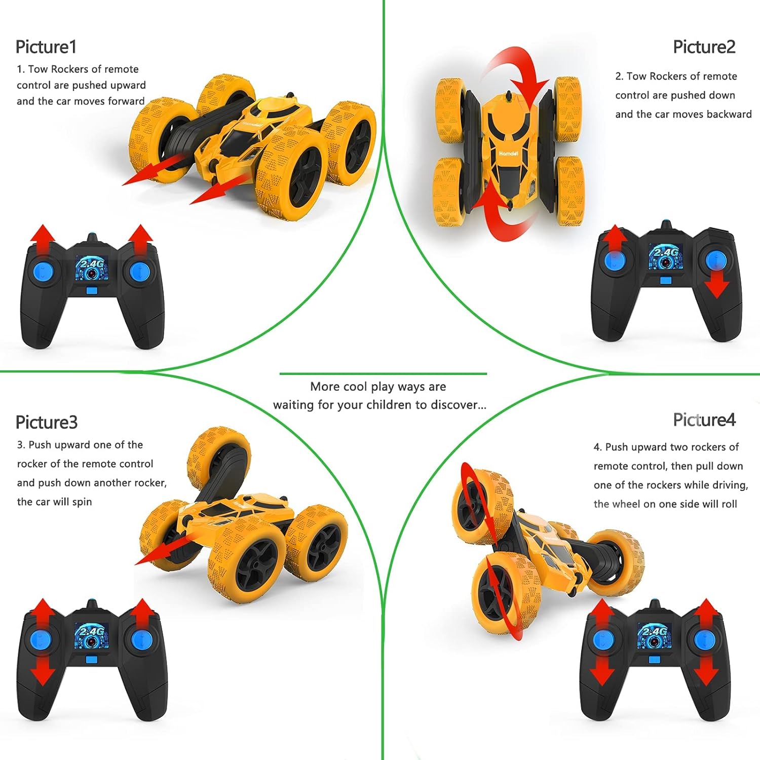 Remote Control Car Double Sided 360°Rotating 4WD RC Cars with Headlights 2.4GHz Electric Race Stunt Toy Car Rechargeable Toy Cars for Boys Girls Birthday (Yellow)
