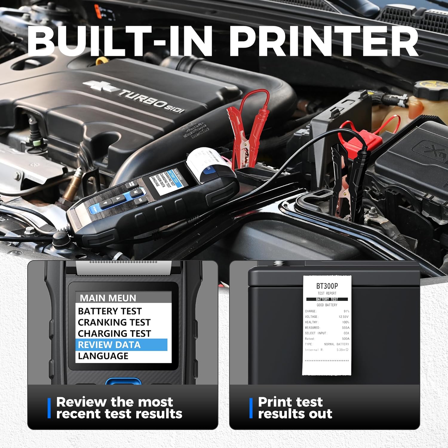 - [12V Battery Tester] The BT300P is a quick and accurate battery tester that offers printed diagnostic receipts. Know everything about the health of 12V batteries, the 12V & 24V starter motor’s cranking status, and 12V & 24V vehicle electronic system’s charging condition. This is TOPDON’s newly developed battery tester that ensures your batteries are always working at an optimum level.