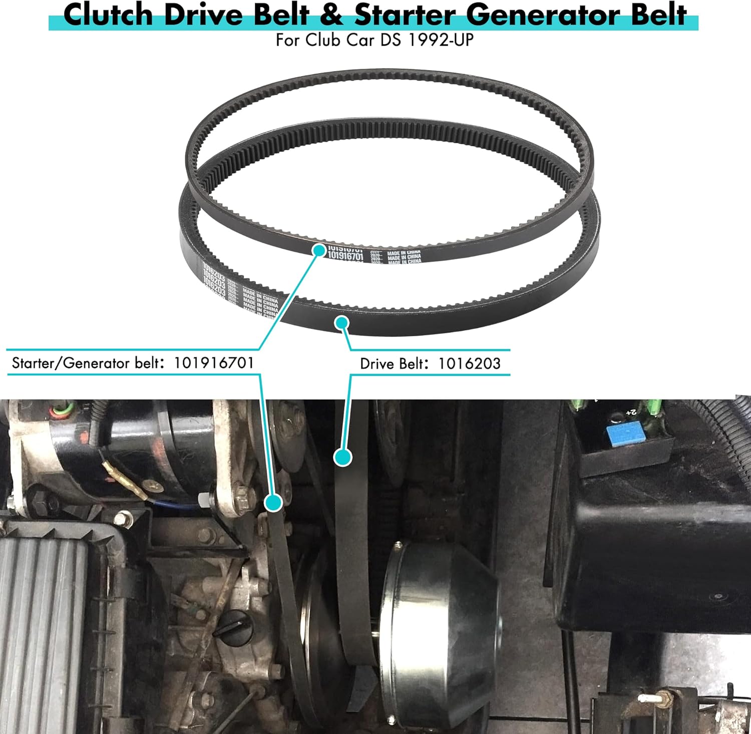 - 10L0L Golf Cart Tune Up Kit & Drive Belt Starter Gen.Belt fit for Club Car DS Gas 1992-2004 Models with FE290/FE350 Kawasaki Motor and Clutch;