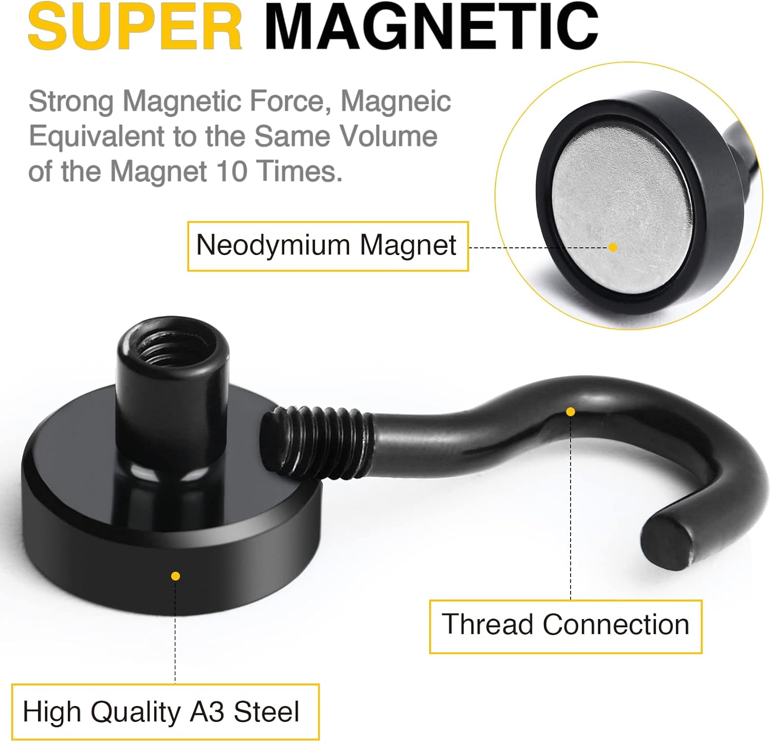- 【Excellent Black layer Coating】Strong rare earth neodymium magnet hooks are plated with 3 layers of protective coatings - Nickel + Copper + Nickel (Ni-Cu-Ni), which can greatly resist rust and corrosion, making magnetic hooks ideal for long term use