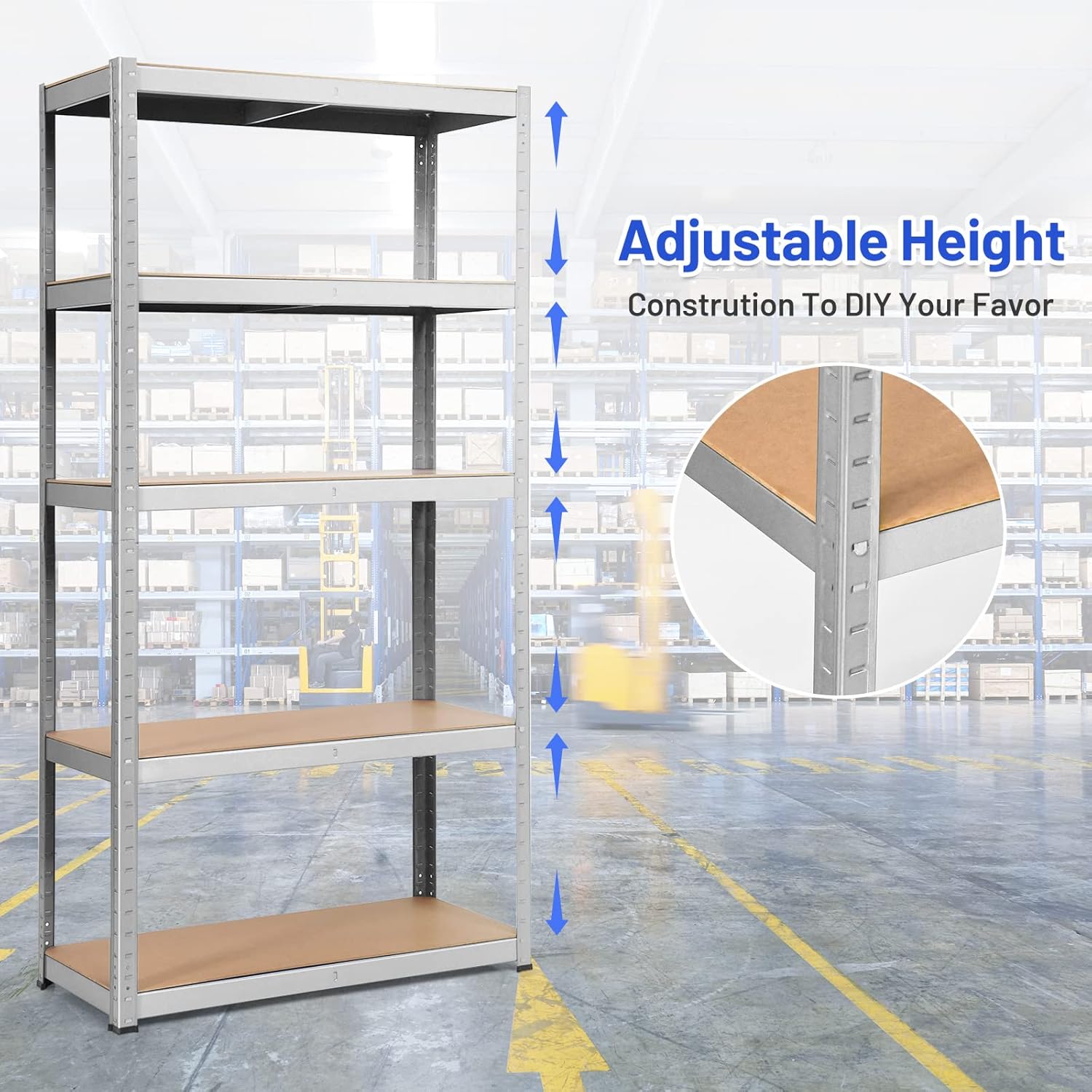 ERGOMASTER 5 Tiers Steel Shelves for Storage Heavy Duty Garage Organization Utility Shelf Rack for Books, Kitchenware and Tools Bolt-Free Assembly 72 x 16 x 72 inches (Set of 2,Silver)