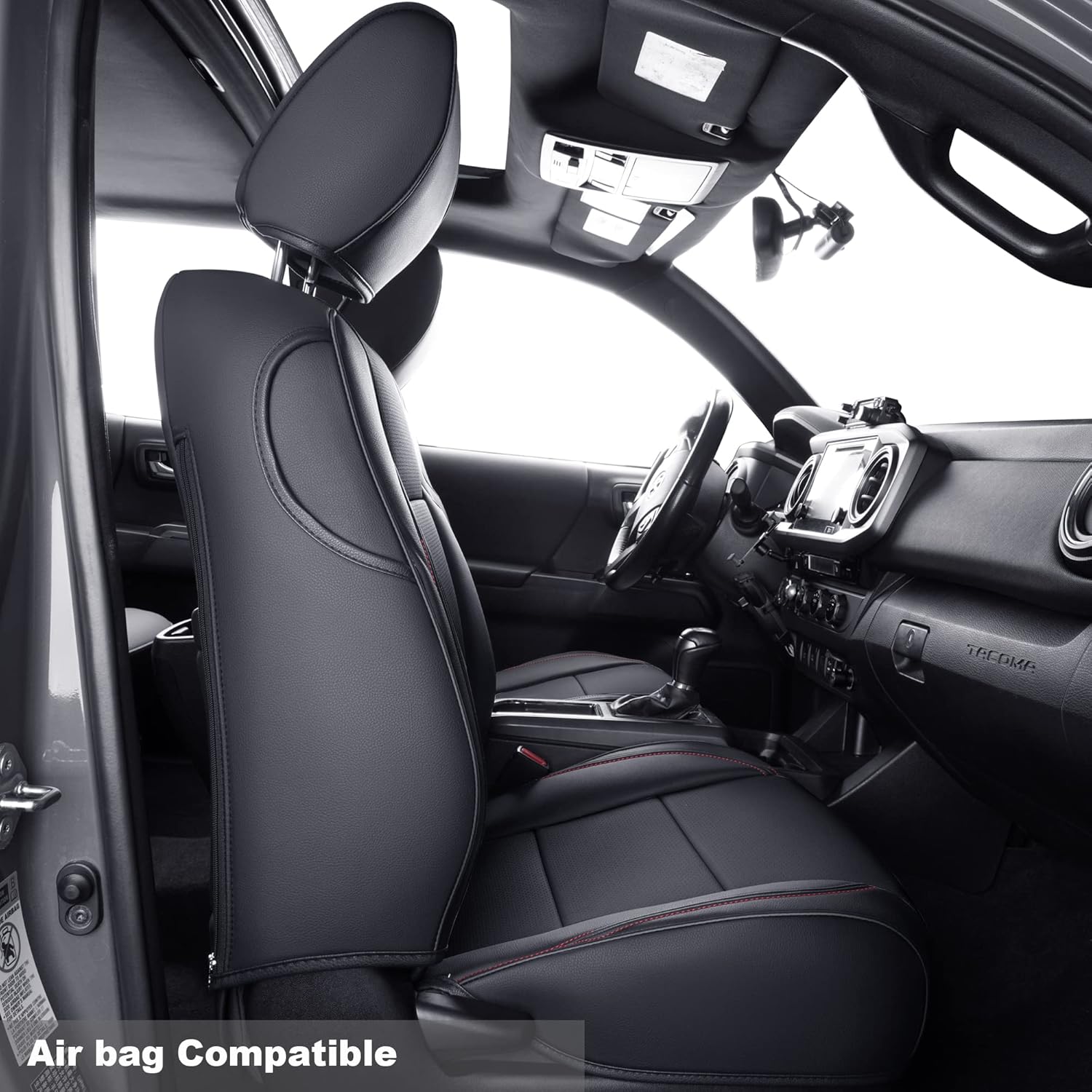 LUCKYMAN CLUB Tacoma Custom Fit Seat Covers for 2016-2023 Tacoma Crew Cab with Faux Leather (Black & Red)