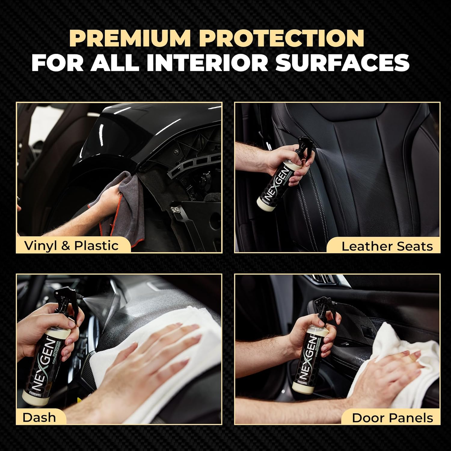 Nexgen Interior Conditioner (8oz) - Non-Greasy, UV-Blocking Formula - Fresh Leather Scent - On-The-Go Car Detailing - Car Cleaning Supplies - for Car Seats, Dashboards, Door Panels, & More