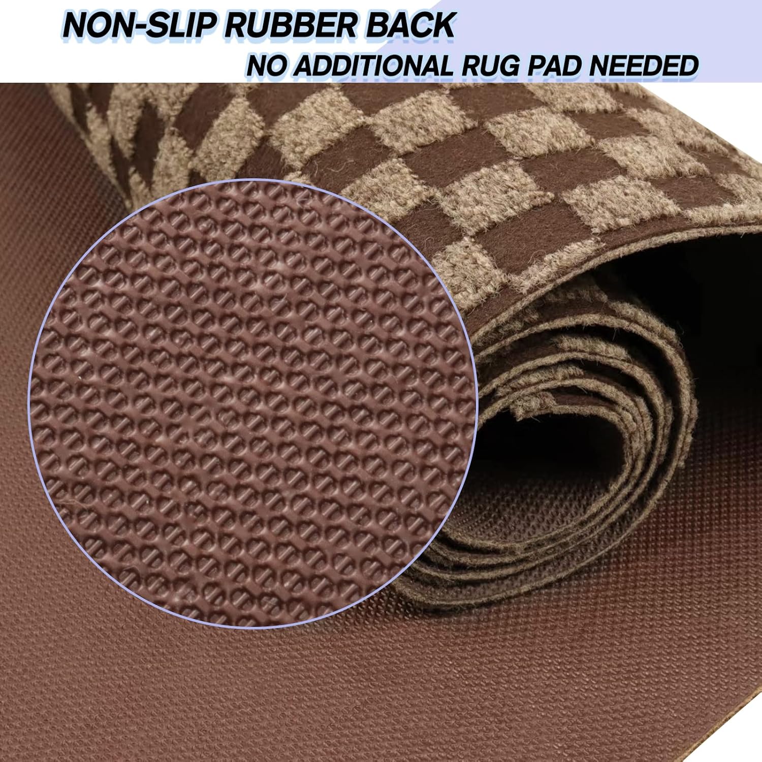 Custom Size Backed Non-Slip Area Rugs Runner, Easy Clean, Waterproof Runner Rugs for Hallway Entryway, Kitchen, Laundry, 2FT x 59FT, Brown Checkered