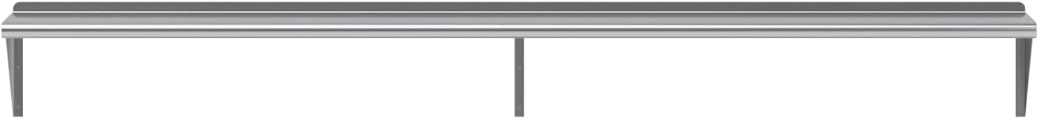 - 12 in. x 96 in. Stainless Steel Wall Shelf with 10 in. High Mounting Brackets. This heavy-duty multifunctional stainless wall shelf is made with 18 gauge stainless steel and can hold up to 360 Lbs of weight. The design features a 1 in. backsplash and bullnose edge. It's made with durable welded corners and support brackets.