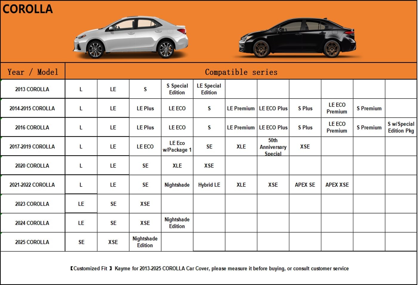 - ăSuitable forăâ Custom fit for toyota corolla sedan(2000-2025)ďźCome with a large enough portable bag to store your cover when you do not use.