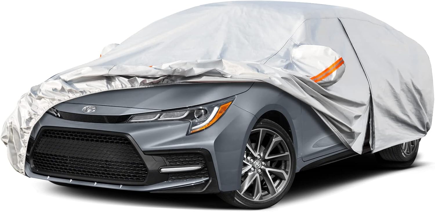 Kayme 6 Layers Car Cover Custom Fit for Toyota Corolla Sedan (2000-2025) Waterproof All Weather for Automobiles, Outdoor Full Cover Rain Sun UV Protection with Zipper Cotton/Silver