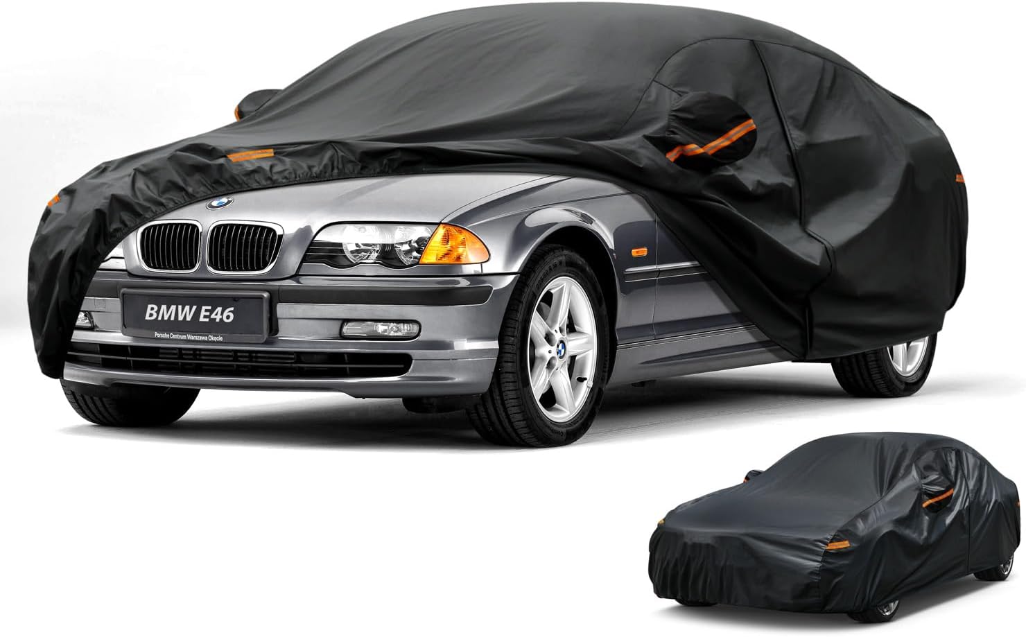 Kayme Car Cover Waterproof All Weather, Full Exterior Cover Outdoor Sun Protection with Zipper, Universal Fit for BMW E46 E36 E30, VW EOS, Nissan 350Z 370Z Versa, Hyundai Accent,etc (Up to 177 inch)