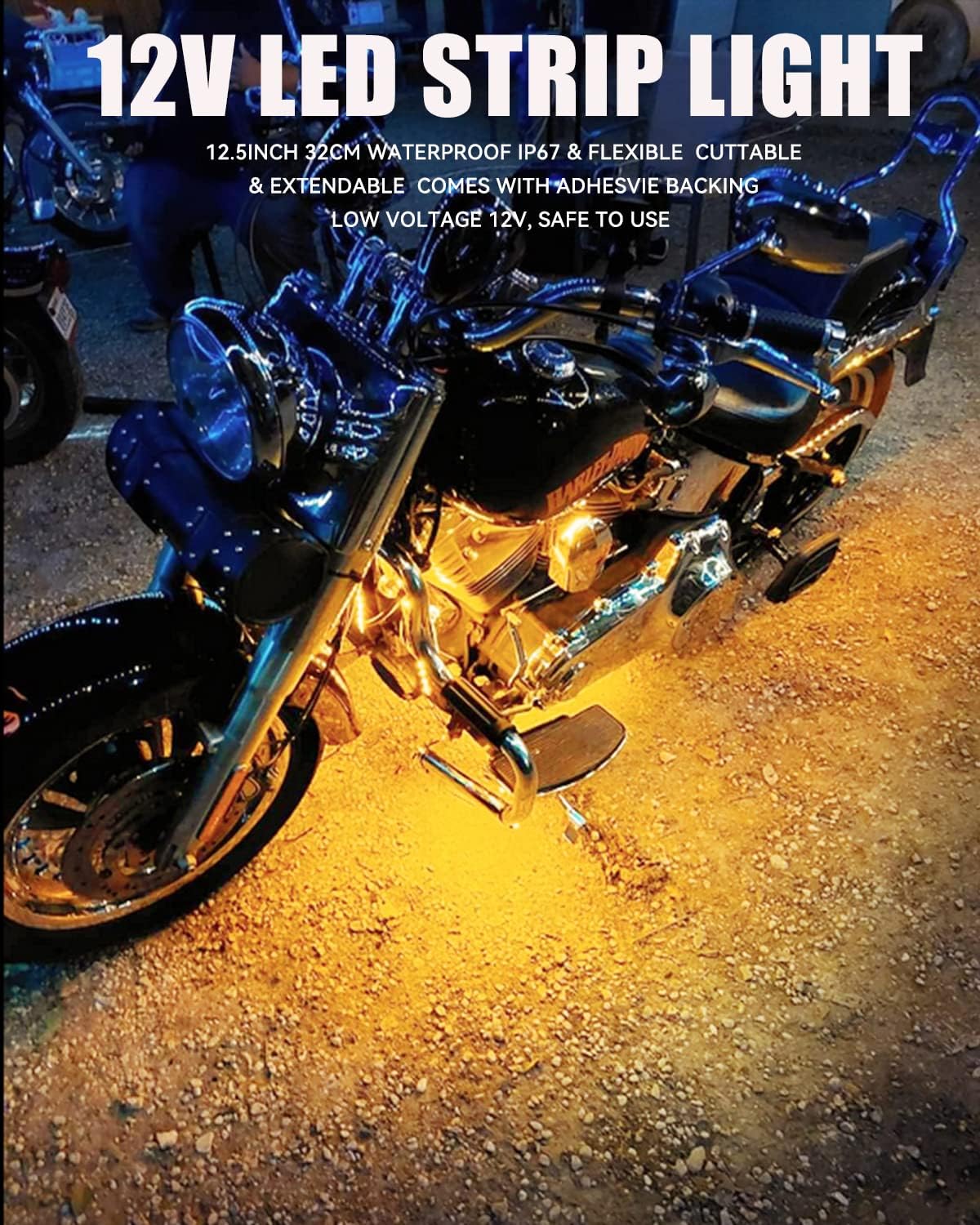 Keiurot 12V Led Light Strip 32CM Waterproof Led Light Strips for Cars Motorcycles Golf Cart Interior & Exterior Marine Boat Amber Led Strip Lights 12V 5050 18SMD,Pack of 4