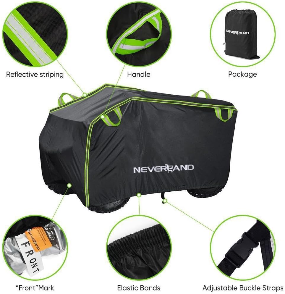 - ăQuality MaterialăNEVERLAND ATV cover is made of high-quality polyester fabric, which is more tear-resistant, wear-resistant, anti-ultraviolet and weather-resistant. ATV cover waterproof heavy duty design protects your ATV from dust, rain, heat, tree sap, damaging UV rays and bad weather
