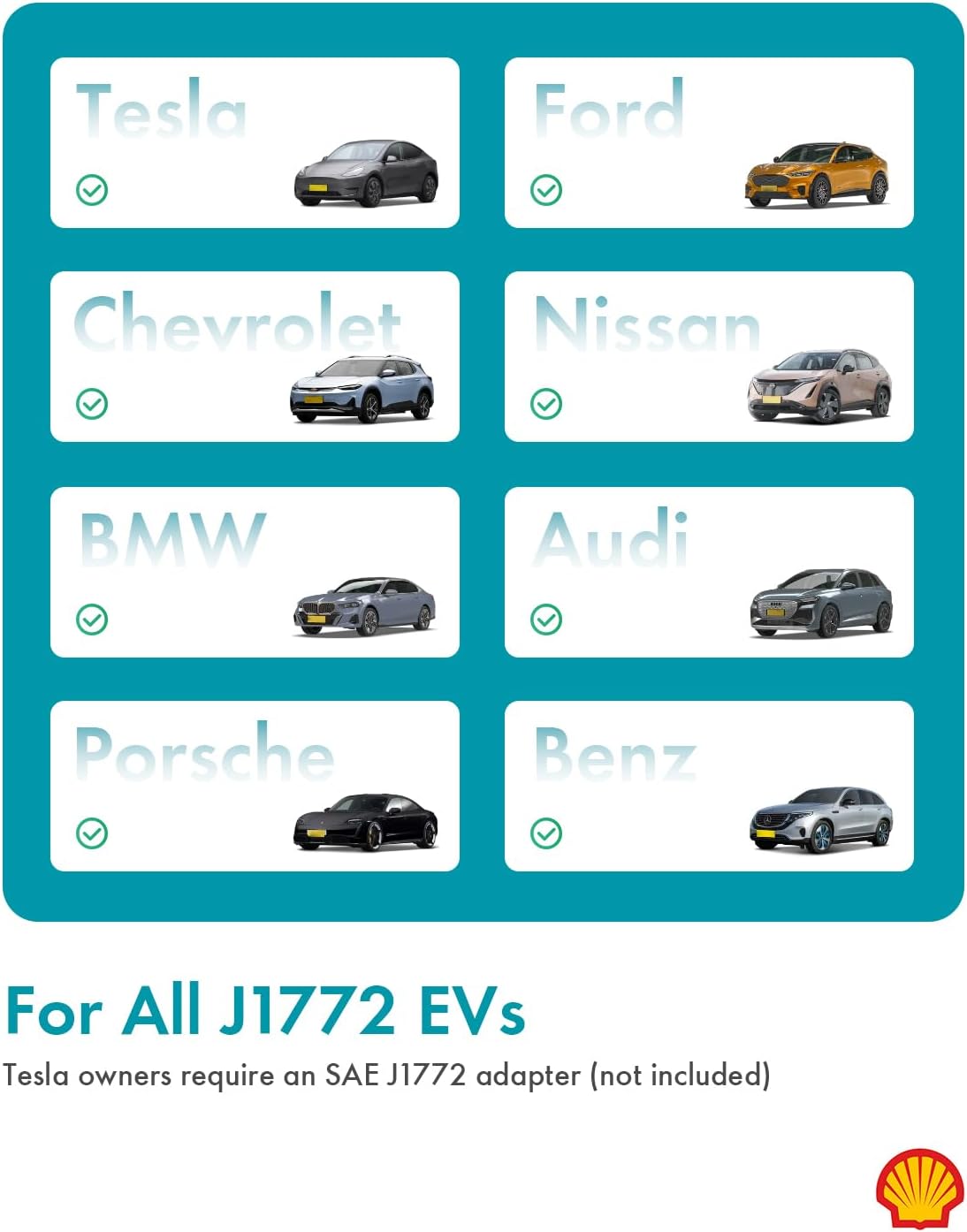 - 【Fully ETL Certified & Energy Star】Undergoing ETL Certification for the entire appliance, the Shell Level 2 EV charger ensures performance, safety, and reliability with both ETL certification and Energy Star accreditation. The connectors, controllers, and cables of the charger bear the ETL certification, guaranteeing safety and quality. Charge securely and confidently with the assurance of safety and quality standards!