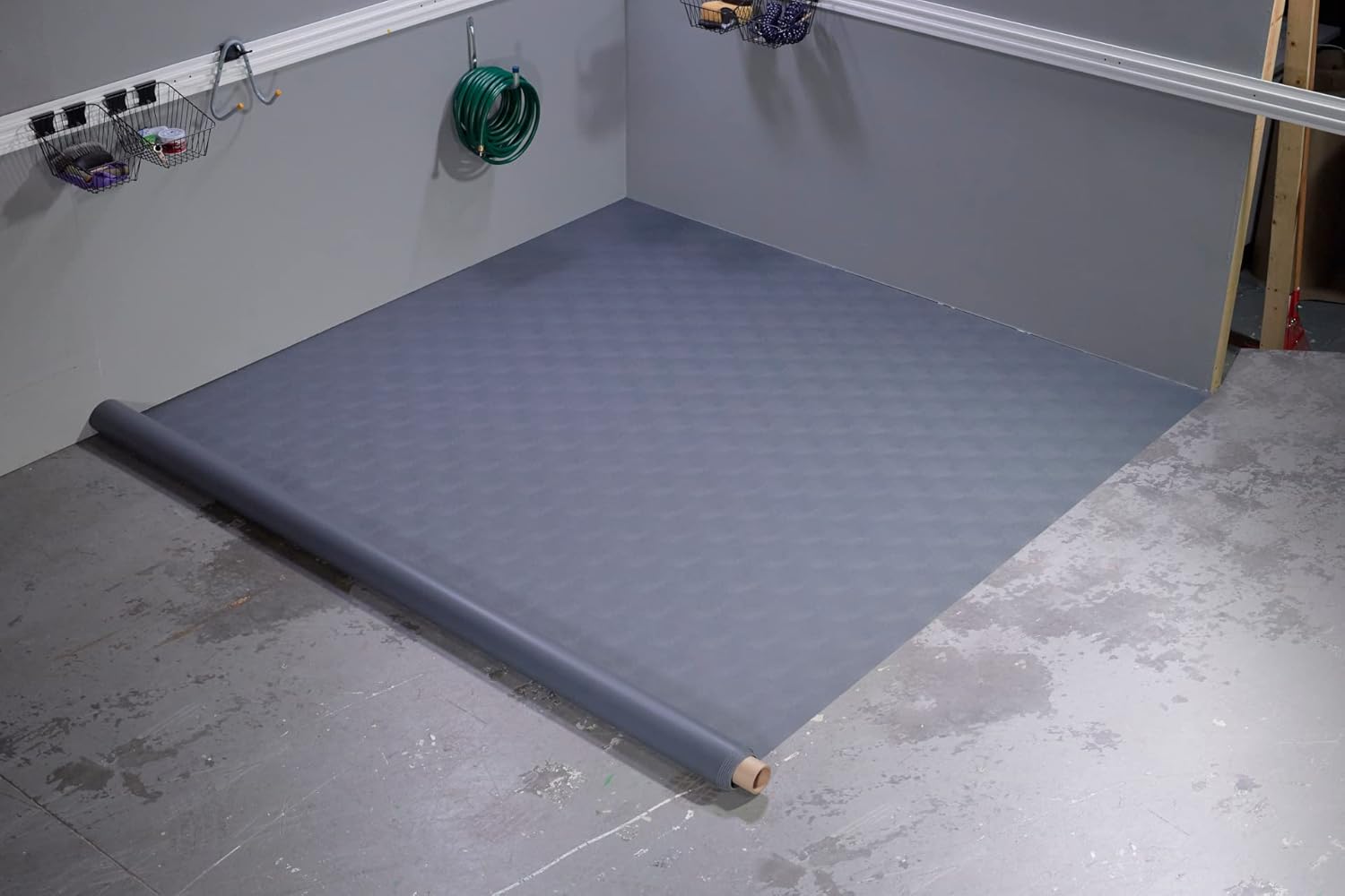 G-Floor Seamless Sheet Vinyl Shed Flooring Cover with Bonded Fibrous Backing - Levant Pattern (8' x 10', Slate Grey)