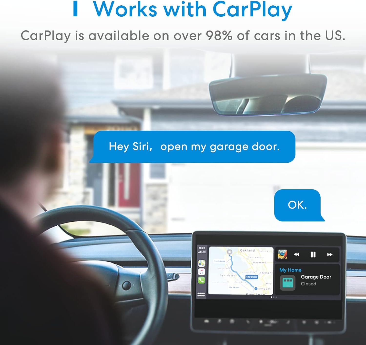 Smart Garage Door Opener Remote, Compatible with Apple HomeKit, Amazon Alexa, Google Assistant, SmartThings, Multiple Notification Modes, No Hub Needed