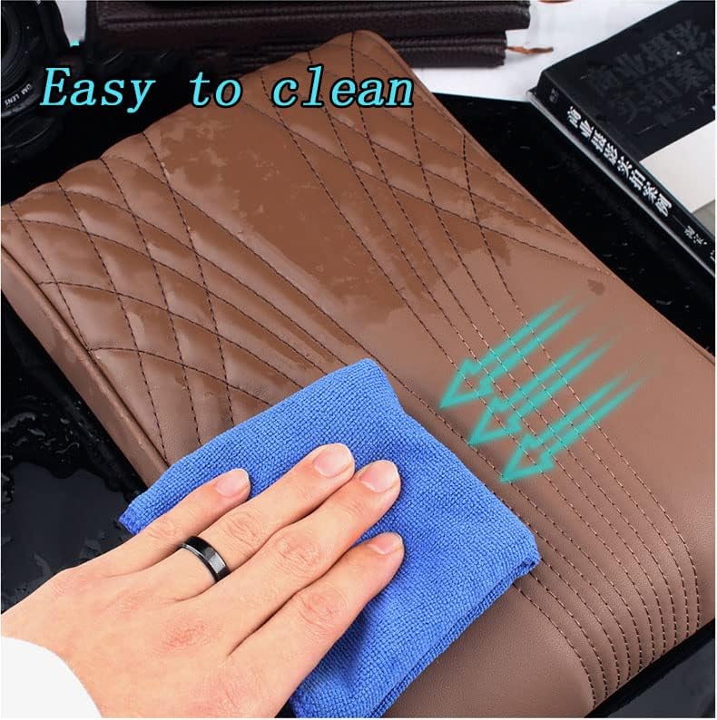 - ๐ค๐๐ฎ๐น๐ถ๐๐ ๐๐ฒ๐ฎ๐๐ต๐ฒ๐ฟ ๐ฆ๐๐ฟ๐ณ๐ฎ๐ฐ๐ฒ: This car armrest glove is made of excellent leather and the surface is waterproof and durable. You can easily wipe sweat or drink from the armrest glove, or wipe clean under light water flow. This car armrest pad also prevents your car's center console from damage such as scratches from cats or dogs' nails