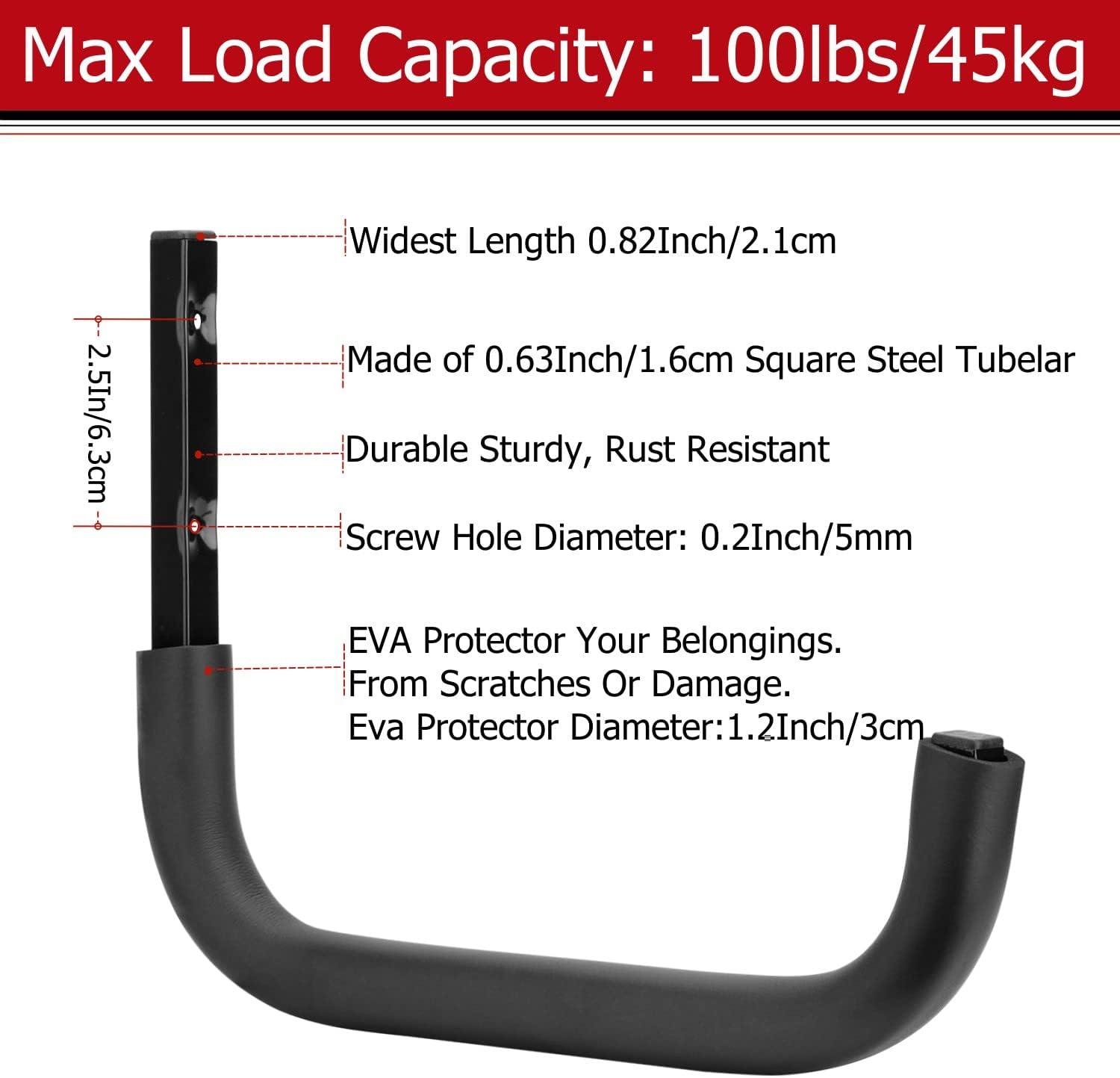 - HIGH QUALITY MATERIAL: This heavy duty storage hook is made of square tubular steel which is durable and sturdy and it’s powder coated and rust resistant. The hanger has EVA arm protector, effectively protect the tools and will not cause scratches.