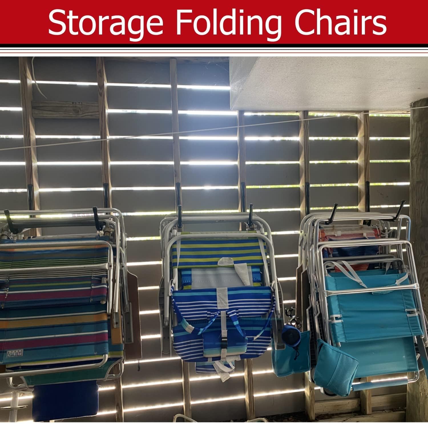 - IDEAL GARAGE STORAGE HOOKS: Heavy duty ladder storage hooks suitable for hanging folding chairs, stools, hoses, table, board rack, broom, shovel, bike, garden tools, sport equipment and other bulky items, each hook holds up to 100 lbs.