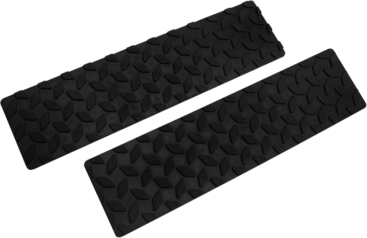 - VERSATILE USE: These mats are a great addition to any potentially slippery surface where better traction is needed, such as trailers, truck beds, cargo vans, boats, docks, ladders, stairsteps, work stations, decks, and more. This set includes two black rubber step mats.