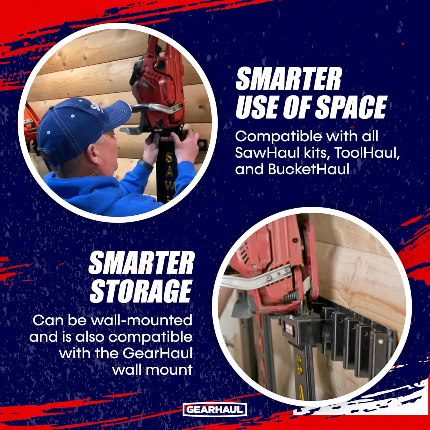 - SMARTER STORAGE. The Sawhaul saw rack can be wall mounted and is also compatible with the GearHaul Wall Mount--keeping your tools off the floor!