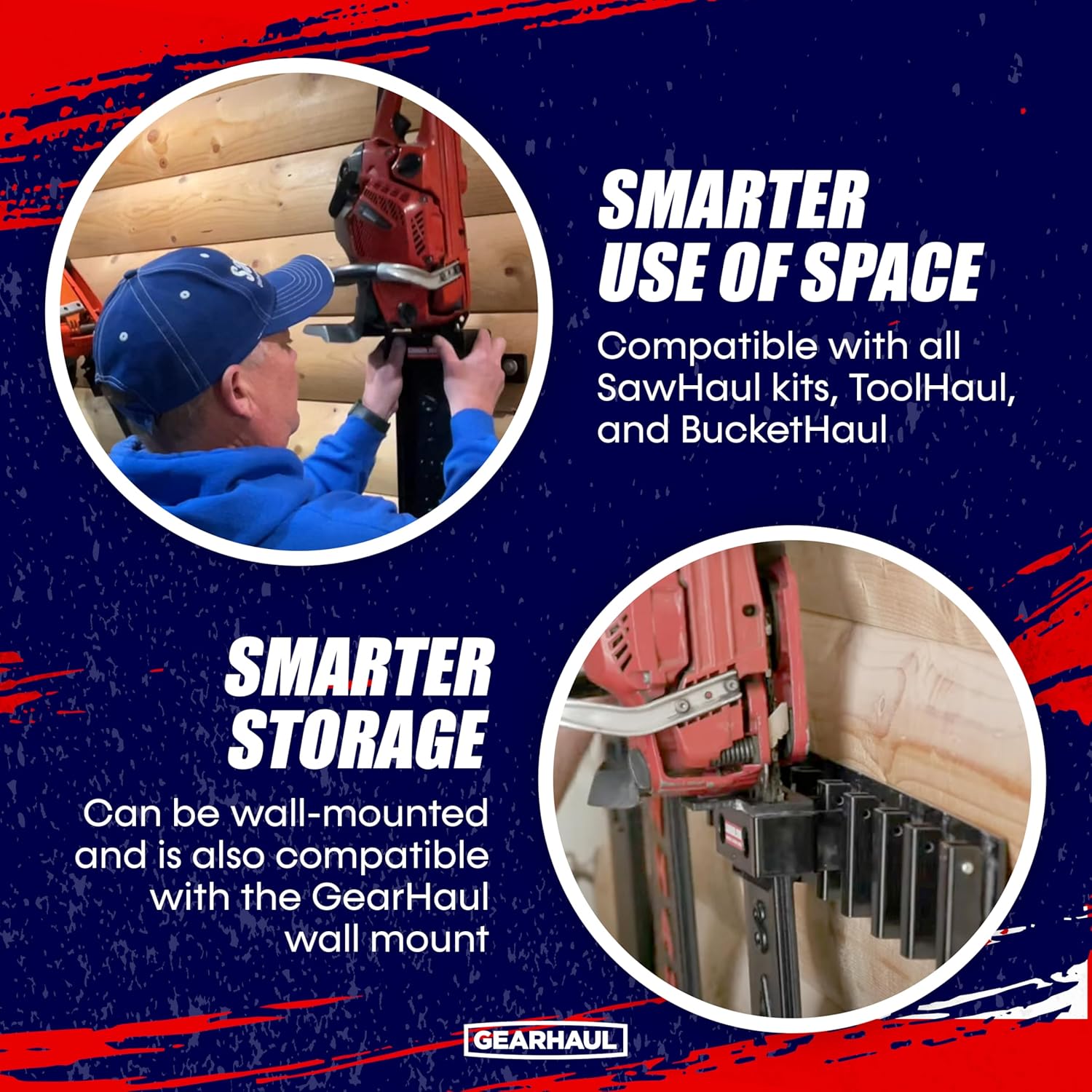 - SMARTER STORAGE. The Sawhaul saw rack can be wall mounted and is also compatible with the GearHaul Wall Mount--keeping your tools off the floor!