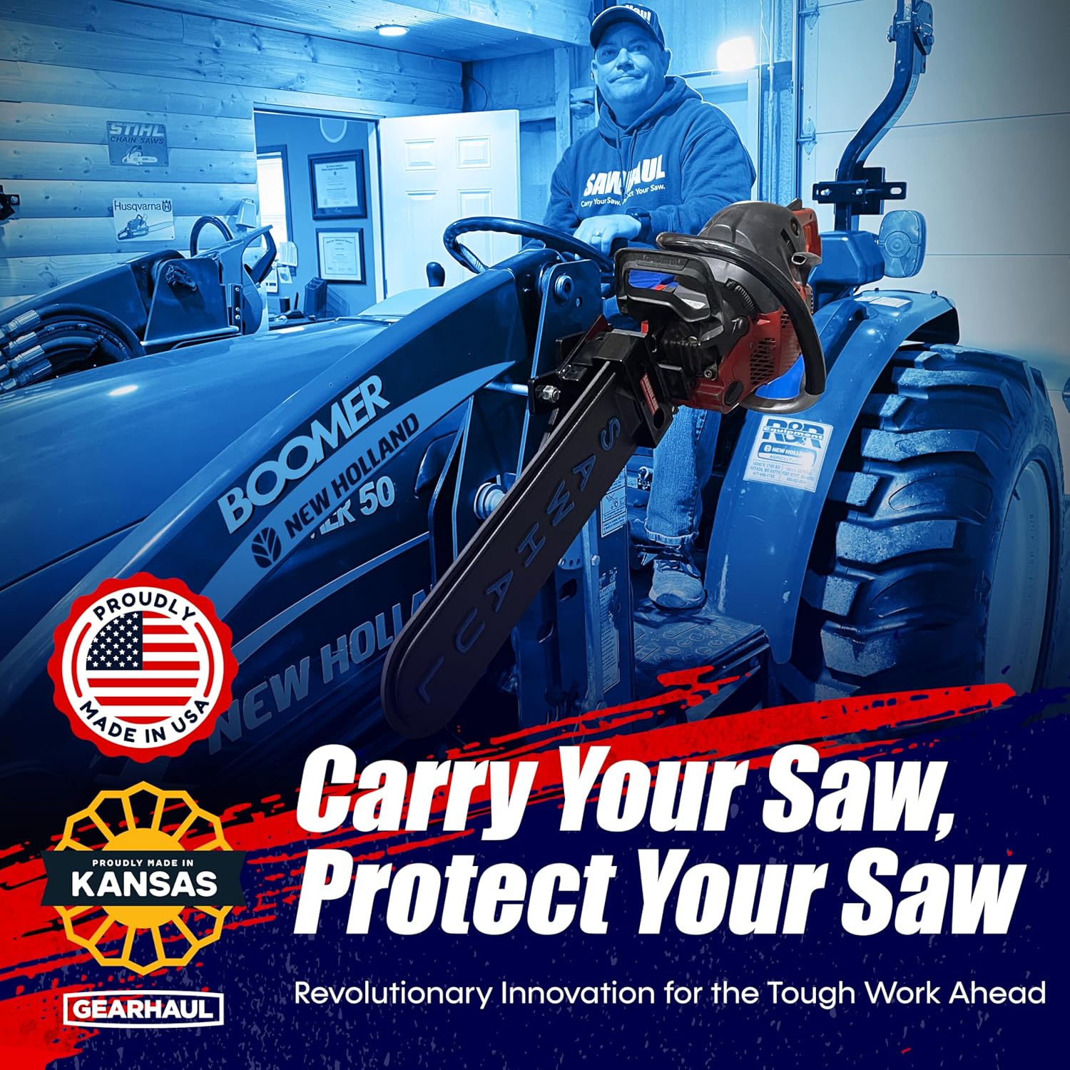 - PROTECT YOUR SAW AND YOUR TRACTOR. Transport with peace of mind using the SawHaul chainsaw mounting bracket, designed to safeguard your chainsaw and tractor from accidental damage. This chainsaw scabbard ensures secure storage during transit, minimizing wear and tear while reducing costly repairs. Also lockable with our specialty designed Commando Lock. (sold separately.)