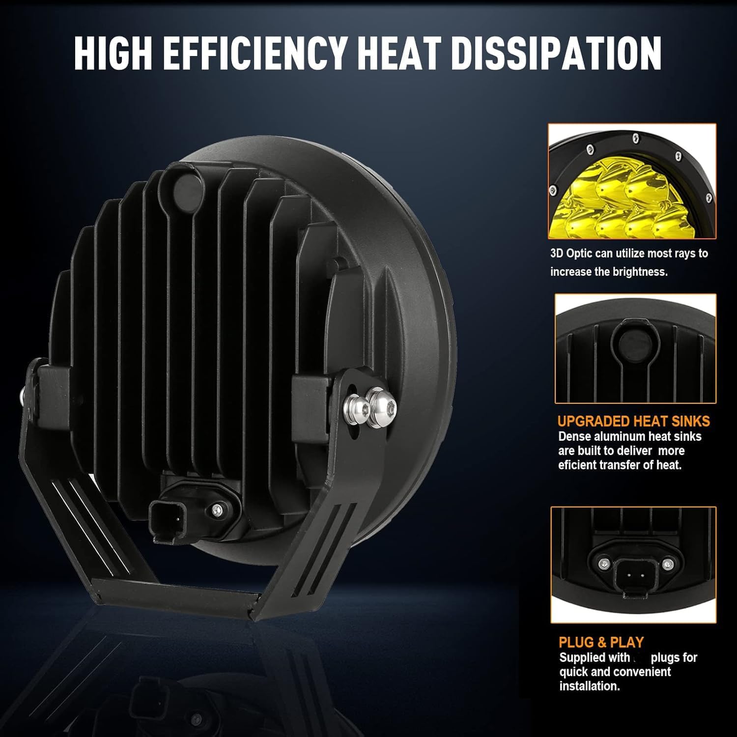 BIGLION.X 7inch Amber Round Off Road Lights Pair 210W 32000LM Super Bright Yellow LED Offroad Driving Lights Spot Lights Waterproof IP68 With EMC 12V-32V for Pickup Trucks SUV UTV