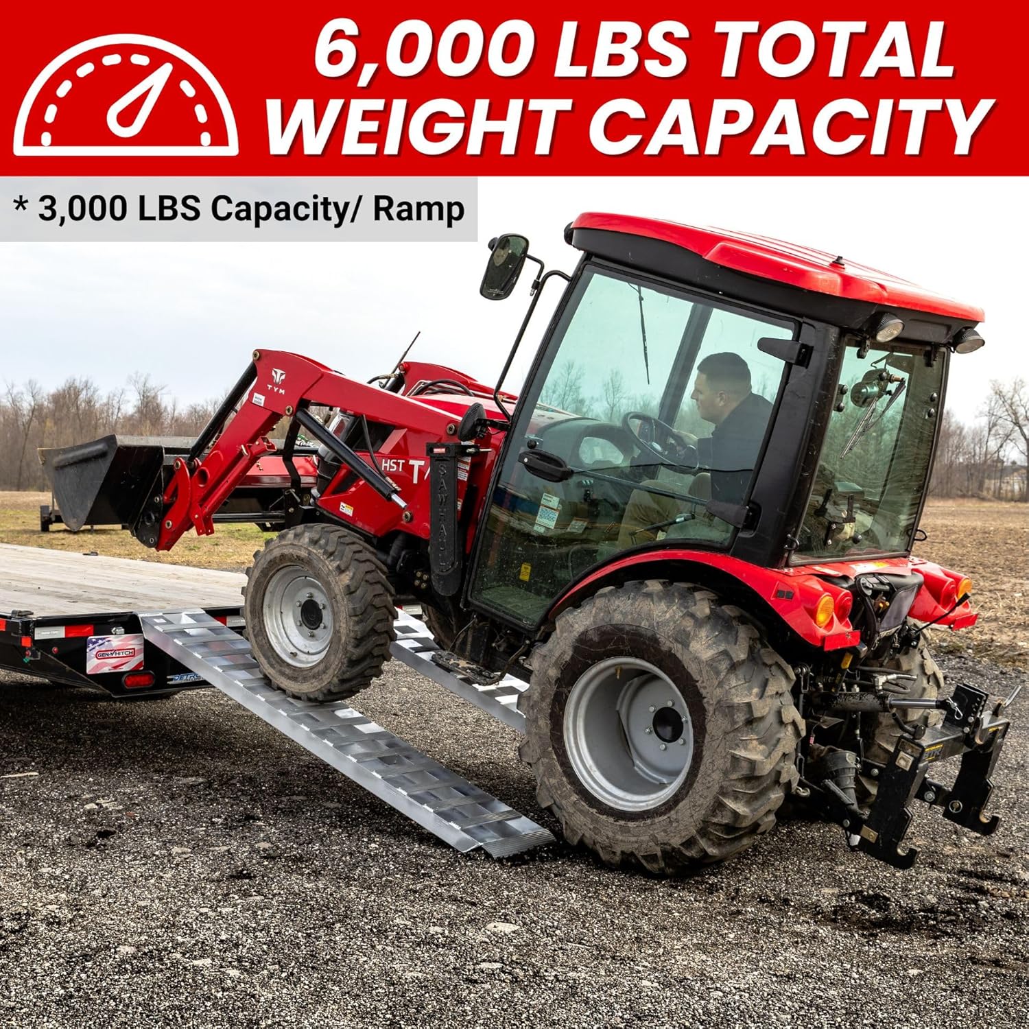 - Superior Load Capacity: Our aluminum loading ramps boast a remarkable 6,000-pound total weight capacity (3,000 pounds each), ensuring they can handle the heaviest of loads. These trailer ramps heavy duty are designed for both efficiency and reliability when loading utility trailers and trucks.